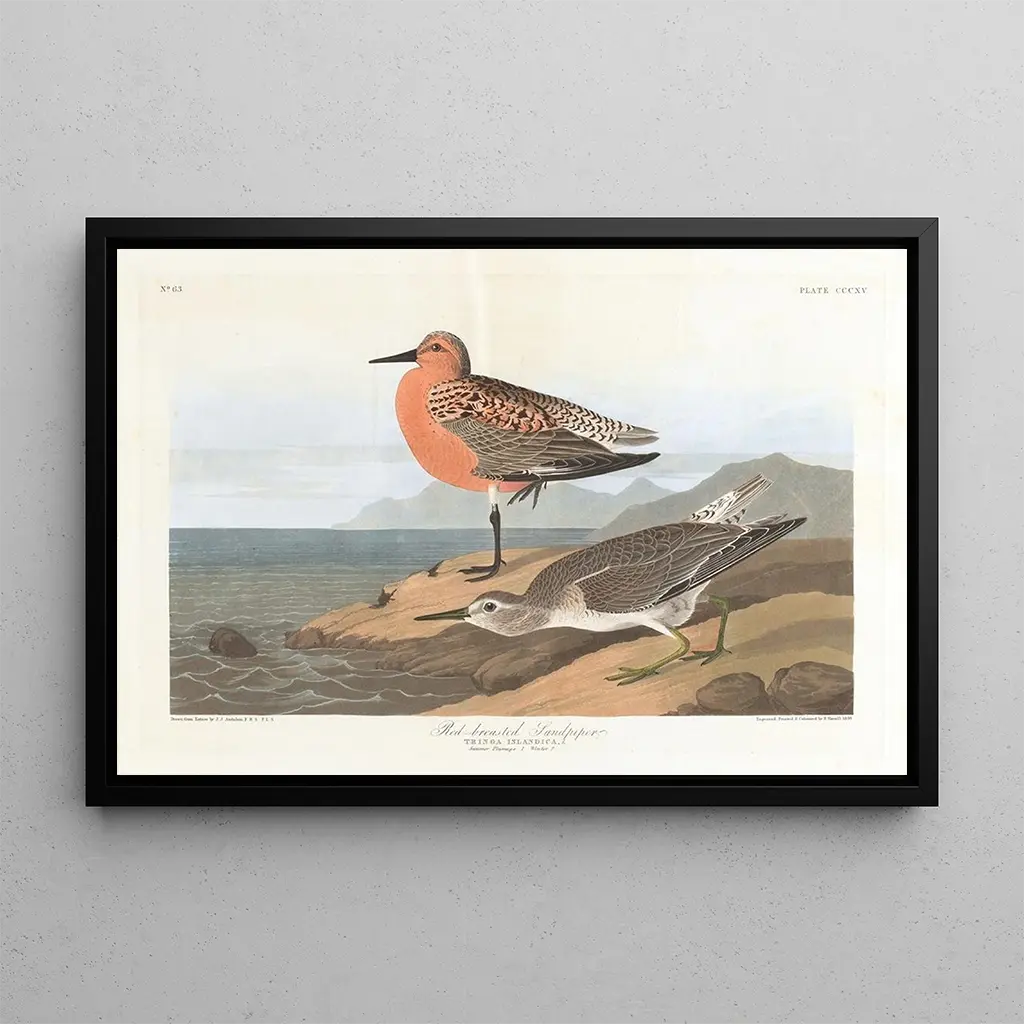 Bécasseau à poitrine rousse : ein Moment ornithologischer Anmut Der "Bécasseau à poitrine rousse" von John James Audubon ist ein Kunstwerk, das die zerbrechliche Schönheit der Natur feiert. Mit bemerkenswerter Präzision stellt Audubon diesen Vogel in seinem natürlichen Lebensraum dar und fängt die Details seines gefiederten Federkleids mit schillernden Farbtönen ein. Die dynamische Komposition, bei der der Bécasseau in Bewegung zu sein scheint, vermittelt ein Gefühl von Leichtigkeit und Freiheit. Die zarten Farben und subtilen Nuancen des Hintergrunds setzen den Hauptfokus perfekt in Szene und schaffen eine visuelle Harmonie, die den Blick anzieht und zum Staunen einlädt. John James Audubon : Pionier der kunstvollen Ornithologie John James Audubon, Naturforscher und Künstler des frühen 19. Jahrhunderts, ist bekannt für seine Beiträge zur Vogelstudie in Amerika. Sein innovativer Ansatz, Kunst und Wissenschaft zu verbinden, ermöglichte die Dokumentation zahlreicher Arten mit unvergleichlicher Präzision. Audubon reiste durch den Kontinent, beobachtete und malte Vögel in ihrer natürlichen Umgebung. Sein Werk, zu dem auch der "Bécasseau à poitrine rousse" gehört, ist ein ikonisches Beispiel und bereichert nicht nur die Welt der Kunst, sondern sensibilisiert auch die Öffentlichkeit für Biodiversität und Artenschutz. Eine dekorative Ergänzung mit vielfältigen Vorzügen Der kunstdruck des "Bécasseau à poitrine rousse" ist eine charmante Ergänzung für jede Innendekoration, sei es im Wohnzimmer, im Büro oder im Schlafzimmer. Seine außergewöhnliche Druckqualität und seine visuelle Anziehungskraft machen ihn zur perfekten Wahl für Kunst- und Naturliebhaber. Dieses Bild schafft eine Verbindung zur Tierwelt und bringt eine Note von Gelassenheit und Eleganz in Ihren Raum. Mit der Wahl dieses Leinwanddrucks entscheiden Sie sich für ein Kunstwerk, das nicht nur Ihr Interieur verschönert, sondern auch eine faszinierende Geschichte über die Schönheit der natürlichen Welt erzählt.