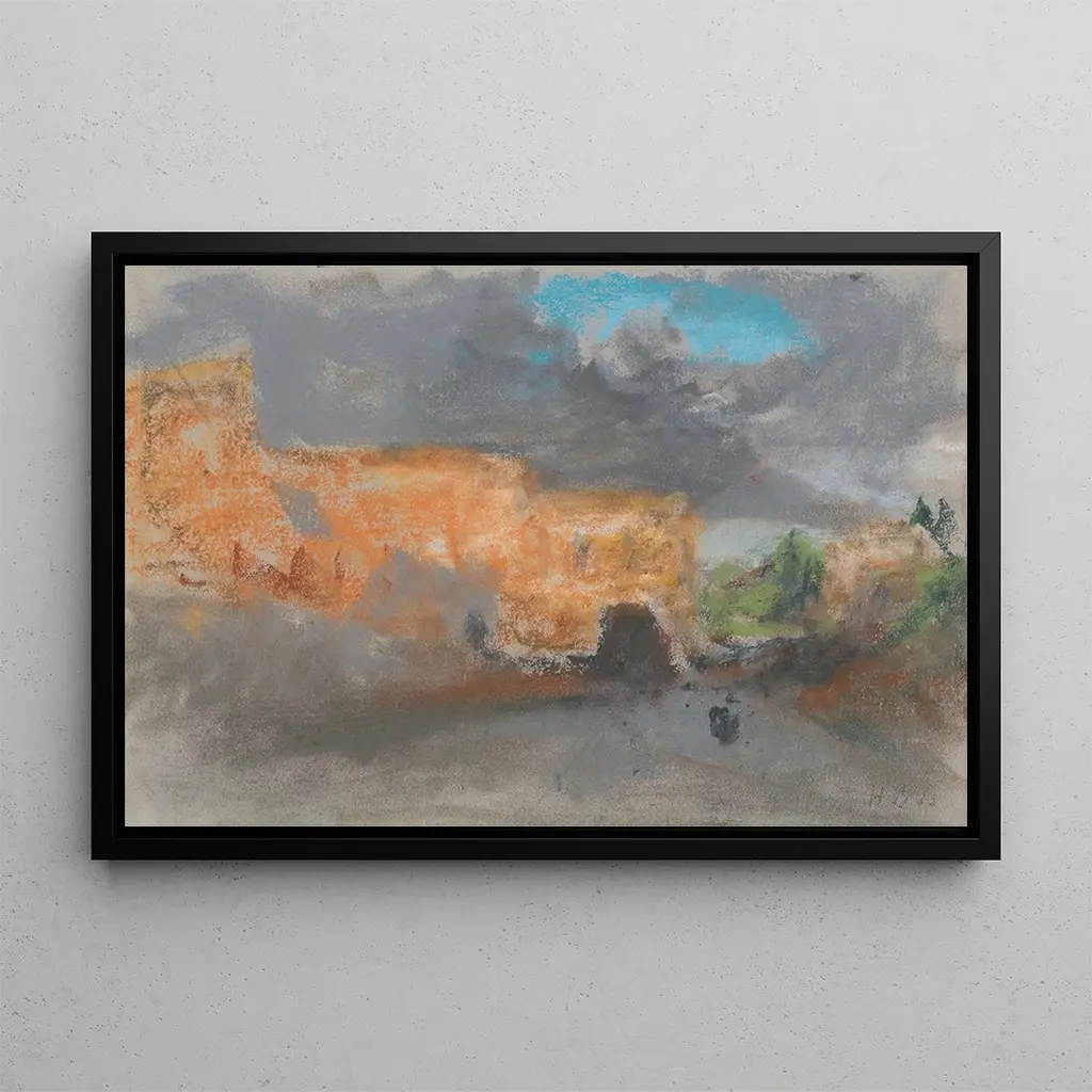 Das Gemälde "Der Kolosseum in Rom" von Hercules Brabazon Brabazon entführt uns ins Herz der Antike, wo die majestätische Architektur des berühmten römischen Amphitheaters mit Glanz emporragt. Die warmen Töne von Terrakotta und die zarten Schatten schaffen eine Atmosphäre, die zugleich lebendig und nostalgisch ist. Die Technik des Künstlers, die Aquarell und Öl verbindet, verleiht diesem Werk eine Leichtigkeit und Tiefe, die den Blick fesseln. Die detaillierten Darstellungen der Bögen und Säulen, getaucht in goldenes Licht, erinnern an die Echos der dort stattfindenden Spektakel und laden uns ein, von einer vergangenen Epoche zu träumen.