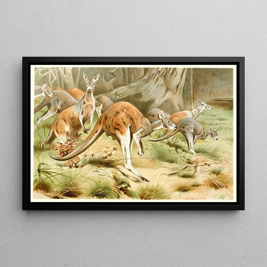 Der rote Känguru: ein Symbol der australischen Tierwelt. "Der rote Känguru" ist ein lebendiges Kunstwerk, das die Essenz der einzigartigen Tierwelt Australiens einfängt. Mit warmen, erdigen Farben zeigt das Bild dieses ikonische Beuteltier in seiner natürlichen Umgebung, wobei die Nuancen von Braun und Grün die australische Erde widerspiegeln. Die vom Künstler verwendete Maltechnik ermöglicht es, die anmutige Bewegung des Kängurus realistisch darzustellen, während der verschwommene Hintergrund eine weite, wilde Landschaft andeutet. Diese dynamische Darstellung lädt den Betrachter ein, die Schönheit und Einzigartigkeit der australischen Natur zu schätzen. Wilhelm Kuhnert: ein Pionier der Tierkunst. Wilhelm Kuhnert, deutscher Maler und Illustrator, ist bekannt für seine Werke, die die wilde Tierwelt, insbesondere die Australiens, darstellen. Aktiv zu Beginn des 20. Jahrhunderts bereiste Kuhnert die Welt, um die Landschaften und Tiere, denen er begegnete, zu studieren. Sein Stil, geprägt von beeindruckendem Realismus und akribischer Detailgenauigkeit, machte ihn zu einer bedeutenden Figur der Tierkunst. Seine Werke, wie "Der rote Känguru", zeugen von seinem Engagement, die Schönheit und Vielfalt der Tierarten darzustellen und gleichzeitig das Bewusstsein für den Naturschutz zu fördern. Eine dekorative Ergänzung mit vielfältigen Vorzügen. Der kunstdruck von "Der rote Känguru" ist eine faszinierende Ergänzung jeder Kunstsammlung und verleiht Ihrem Raum einen Hauch von Exotik und Vitalität. Ob im Büro, Wohnzimmer oder Schlafzimmer – dieses Bild zieht den Blick auf sich und weckt Neugier. Die Qualität des Kunstdrucks garantiert eine detailgetreue Wiedergabe der Farben und Details des Originalwerks, was einen starken visuellen Eindruck hinterlässt. Durch die Integration dieses Leinwandbildes in Ihre Dekoration schaffen Sie eine inspirierende Umgebung, die die Schönheit der Tierwelt und Natur feiert und gleichzeitig eine künstlerische Dimension in Ihr Zuhause bringt.
