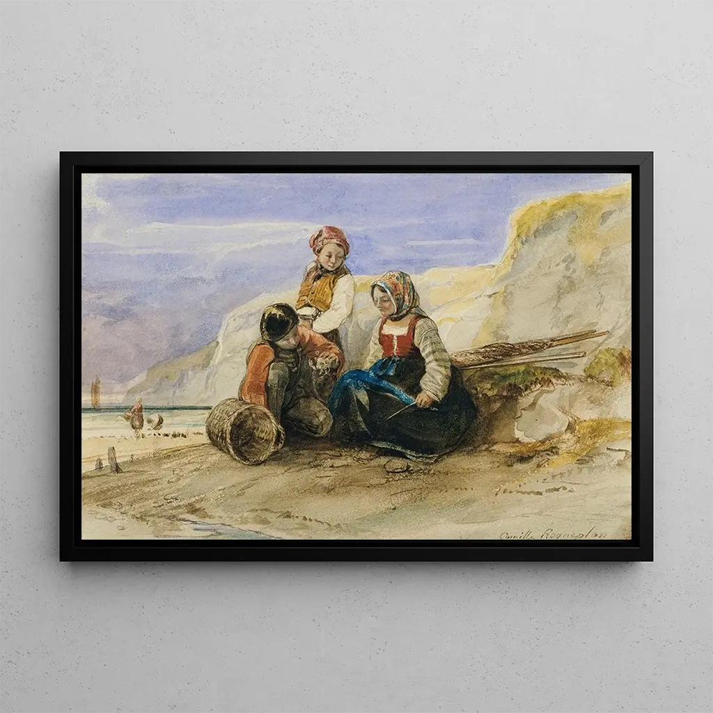 In Les Enfants du Pêcheur taucht uns Camille Joseph Étienne Roqueplan in eine alltägliche Szene voller Zärtlichkeit ein. Die Kinder, fröhlich und sorglos, sind um einen Fischer herum aktiv, ihr Lachen klingt wie eine sanfte Melodie. Die Palette lebendiger Farben, dominiert von Blautönen und Grüntönen, ruft die Frische der Natur und die Vitalität der Kindheit hervor. Die Technik von Roqueplan, die Realismus und Impressionismus verbindet, verleiht diesem Gemälde eine dynamische und warme Atmosphäre und fängt die Essenz der Lebensfreude ein.