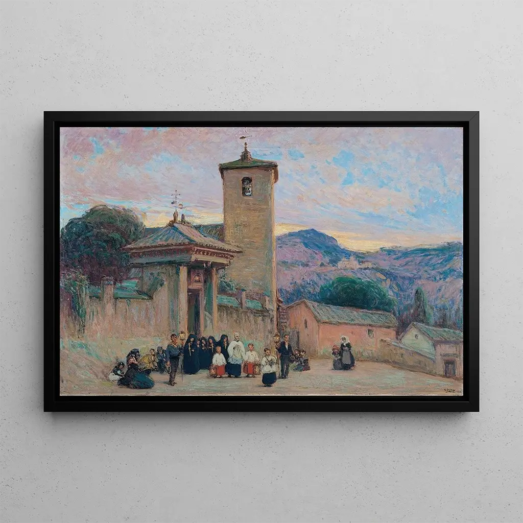 Der Viatique, Toledo: eine Anspielung auf die geistige Reise Die kunstdruckversion Der Viatique, Toledo, entführt uns in eine Szene voller Geheimnis und Gelassenheit. Dieses Gemälde, reich an Details, fängt das Wesen eines Übergangsmoments ein, in dem sich die geistige und körperliche Reise vermischen. Die warmen, erdigen Farben, verbunden mit zarten Schatten, schaffen eine kontemplative Atmosphäre. Der Künstler gelingt es, eine tiefe Emotion durch die Ausdrücke der Figuren zu vermitteln und den Betrachter zum Nachdenken über den Sinn der Reise und des Glaubens einzuladen. Dieses Werk ist eine wahre Einladung zur Meditation, bei der jeder Blick eine neue Nuance der menschlichen Erfahrung offenbart. Gonzalo Bilbao Martínez: ein Künstler im Herzen des spanischen Symbolismus Gonzalo Bilbao Martínez, spanischer Maler des frühen 20. Jahrhunderts, ist bekannt für seinen symbolistischen Stil, der Tradition und Moderne verbindet. Beeinflusst von den künstlerischen Strömungen seiner Zeit, schuf er Werke, die von der menschlichen Seele und ihren Kämpfen erzählen. Der Viatique, Toledo, steht im Kontext, in dem Spanien nach Jahrhunderten der Tradition seine künstlerische Identität neu definieren möchte. Bilbao Martínez hat durch seinen einzigartigen Ansatz zu dieser Renaissance beigetragen, indem er spirituelle Themen und erzählerische Elemente nutzt, um die Fantasie des Publikums zu fesseln. Sein Werk bleibt eine Referenz in der spanischen Kunst. Eine dekorative Anschaffung mit vielfältigen Vorzügen Der kunstdruck Der Viatique, Toledo, ist ein dekoratives Stück, das jeden Wohnraum bereichern wird. Ob im Wohnzimmer, Wartezimmer oder Büro, dieses Gemälde bringt einen Hauch von Kultur und Reflexion. Die Druckqualität gewährleistet eine bemerkenswerte Treue zu den Details und Farben des Originalwerks, bei gleichzeitig langlebiger Haltbarkeit. Durch die Integration dieses Leinwandbildes in Ihre Dekoration schaffen Sie eine inspirierende und beruhigende Umgebung, die zur Kontemplation und Diskussion einlädt. Es ist eine ideale Wahl für alle, die Ästhetik und spirituelle Tiefe verbinden möchten.