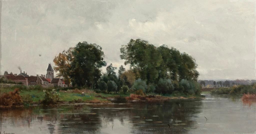 Ein Dorf am Fluss - Adrien Jacques Sauzay