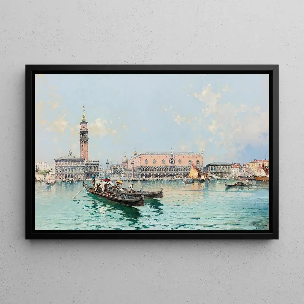 Grand Canal Venedig: eine Ode an die Magie der Serenissima Das Gemälde "Grand Canal Venedig" von Franz Richard Unterberger ruft die Pracht und Eleganz der Stadt der Kanäle hervor. Dieses lebendige Werk fängt die Bewegung der Gondeln ein, die ruhig auf den schimmernden Wassern gleiten, während die majestätischen venezianischen Paläste im Hintergrund emporragen. Die schillernden Farben und das goldene Licht des Sonnenuntergangs schaffen eine romantische und bezaubernde Atmosphäre. Unterberger, mit seiner Fähigkeit, mit Licht und Schatten zu spielen, gelingt es, die Essenz Venedigs zu vermitteln und den Betrachter einzuladen, von seinen engen Gassen und charmanten Brücken zu träumen. Franz Richard Unterberger: ein Meister der Stadtlandschaft Franz Richard Unterberger, Maler des 19. Jahrhunderts, ist bekannt für seine detaillierten Darstellungen von Stadtlandschaften, insbesondere von Venedig. Ursprünglich aus Österreich stammend, wurde er tief von der Schönheit dieser Stadt beeinflusst, die er mehrfach besuchte. Sein Stil, der Realismus und Romantik verbindet, ermöglichte es ihm, die Seele Venedigs mit bemerkenswerter Präzision einzufangen. Unterberger hat es verstanden, Szenen des täglichen Lebens zu verewigen, während er die architektonische Majestät der Stadt hervorhob, was ihn zu einem unverzichtbaren Künstler seiner Zeit macht. Eine dekorative anschaffung mit vielfältigen vorteilen Der kunstdruck des "Grand Canal Venedig" ist eine perfekte Ergänzung Ihrer Inneneinrichtung, sei es im Wohnzimmer, Büro oder Schlafzimmer. Seine Druckqualität und die Liebe zum Detail machen dieses Leinwandbild zu einem wahren Meisterwerk zum Bewundern. Durch die Integration dieses Werks in Ihren Raum bringen Sie einen Hauch von Eleganz und Raffinesse ein und rufen gleichzeitig die Magie Venedigs wach. Dieses Gemälde wird Ihre Gäste begeistern und Ihre Umgebung bereichern, sodass jeder Blick zu einer Einladung zur Flucht wird.