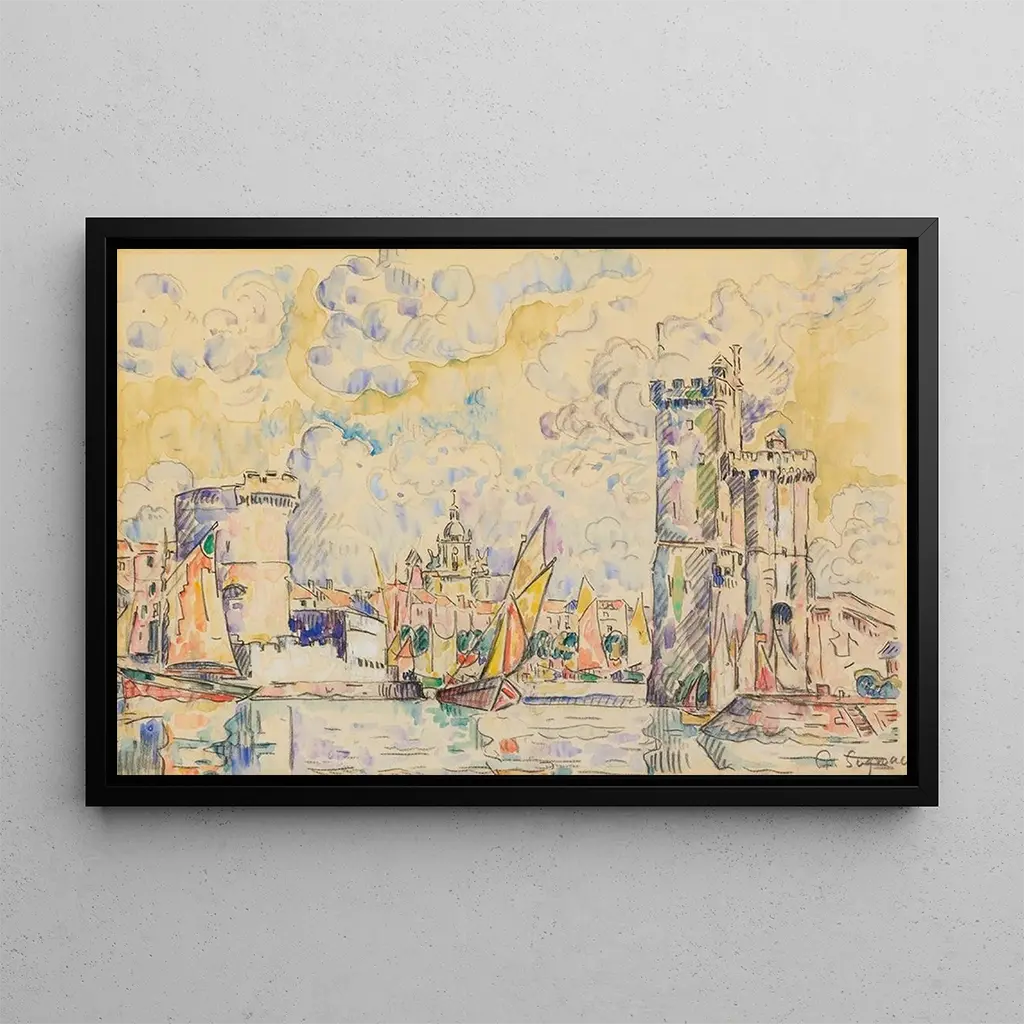Port de La Rochelle : eine lebendige maritime Szene Das Gemälde "Port de La Rochelle" von Paul Signac fängt die Lebendigkeit eines belebten Hafens ein, wo die weißen Segel der Boote sich mit den schimmernden Reflexen des Wassers vermischen. Die kräftigen und mutigen Farben, typisch für den Pointillismus-Stil, verleihen der Szene eine dynamische Energie. Die Technik von Signac, bei der Farbkleckse nebeneinandergesetzt werden, schafft eine lebendige und leuchtende Atmosphäre, die den Betrachter einlädt, die Bewegung und das Leben an diesem ikonischen Ort zu spüren. Jedes Detail, von den Kai bis zu den Booten, ist eine Feier des maritimen Lebens. Paul Signac : Pionier des Neoimpressionismus Paul Signac, eine ikonische Figur des Neoimpressionismus, spielte eine entscheidende Rolle in der Entwicklung der Kunst am Übergang zum 20. Jahrhundert. Beeinflusst von Georges Seurat, entwickelte er seine eigene Herangehensweise an den Pointillismus und erforschte die Effekte von Farbe und Licht. Aktiv in der Kunstbewegung in Paris, war Signac auch ein leidenschaftlicher Verfechter der künstlerischen Freiheit. Sein Werk, geprägt von einer ständigen Suche nach reiner Farbe und Harmonie, hat einen unauslöschlichen Eindruck in der Kunstgeschichte hinterlassen und macht ihn zu einem unverzichtbaren Künstler seiner Zeit. Eine dekorative Anschaffung mit vielfältigen Vorzügen Der kunstdruck des "Port de La Rochelle" ist ein faszinierendes Dekorationsstück, ideal, um Ihren Wohnraum zu bereichern. Ob im Wohnzimmer, im Büro oder im Schlafzimmer, diese Leinwand bringt eine Prise Dynamik und Farbe in Ihre Dekoration. Die Druckqualität garantiert eine außergewöhnliche Treue zu den Nuancen und Details des Originalwerks. Mit diesem kunstdruck laden Sie die maritime Energie von Signac in Ihr Zuhause ein und schaffen eine lebendige und künstlerische Atmosphäre, die Kreativität und Inspiration fördert.
