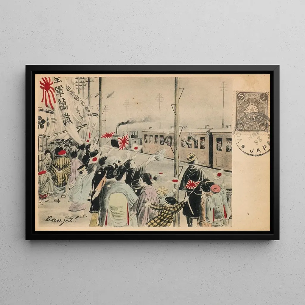 Hurra auf die kaiserliche Armee: eine lebendige Hommage an den militärischen Mut Das Werk "Hurra auf die kaiserliche Armee" zeigt eine Feier-Szene, in der Soldaten von begeisterter Menge umgeben sind. Die lebendigen Farben und die detaillierte Ausführung dieser kunstdrucke fangen die Energie und Aufregung des Ereignisses ein. Die verwendete Technik, wahrscheinlich eine Gravur oder Lithografie, vermittelt eine dynamische und festliche Atmosphäre. Die Gesichter der Figuren, sowohl militärisch als auch zivil, sind von einer spürbaren Begeisterung geprägt und illustrieren den nationalen Stolz sowie die Einheit in Kriegszeiten. Dieses Gemälde, durch seine Realitätsnähe und Ausdruckskraft, lädt dazu ein, über die Rolle der Armee in der Gesellschaft und die damit verbundenen Emotionen nachzudenken. Anonym: ein Spiegel der Spannungen und Bestrebungen seiner Zeit Der Künstler von "Hurra auf die kaiserliche Armee" bleibt anonym, doch sein Werk ist in einen reichen historischen Kontext eingebettet, in dem Kriege und Konflikte Gesellschaften prägten. Diese Art der künstlerischen Darstellung war im 19. Jahrhundert üblich, einer Zeit, die von Kämpfen um die nationale Identität und militärischen Bewegungen geprägt war. Künstler dieser Epoche versuchten oft, den Geist der Zeit einzufangen, indem sie militärische Leistungen glorifizierten und gleichzeitig die populären Gefühle widerspiegelten. Dieses Gemälde, als visuelles Zeugnis, ermöglicht ein besseres Verständnis der sozialen und politischen Herausforderungen seiner Zeit und unterstreicht die Bedeutung der Kunst als Träger kollektiver Emotionen. Eine dekorative Anschaffung mit vielfältigen Vorzügen Der kunstdruck von "Hurra auf die kaiserliche Armee" ist ein dekoratives Stück, das Ihr Interieur bereichern wird, sei es im Wohnzimmer, Büro oder Schlafzimmer. Seine Druckqualität und die Treue zu den Originaldetails machen ihn zur idealen Wahl für Geschichts- und Kunstliebhaber. Durch die Integration dieses Gemäldes in Ihre Dekoration verleihen Sie Ihrem Raum einen Hauch von Authentizität und Charakter. Die ästhetische Anziehungskraft dieses Werks liegt in seiner Fähigkeit, Gespräche anzuregen und Interesse zu wecken, während es gleichzeitig einen bedeutenden Moment der Militärgeschichte feiert.