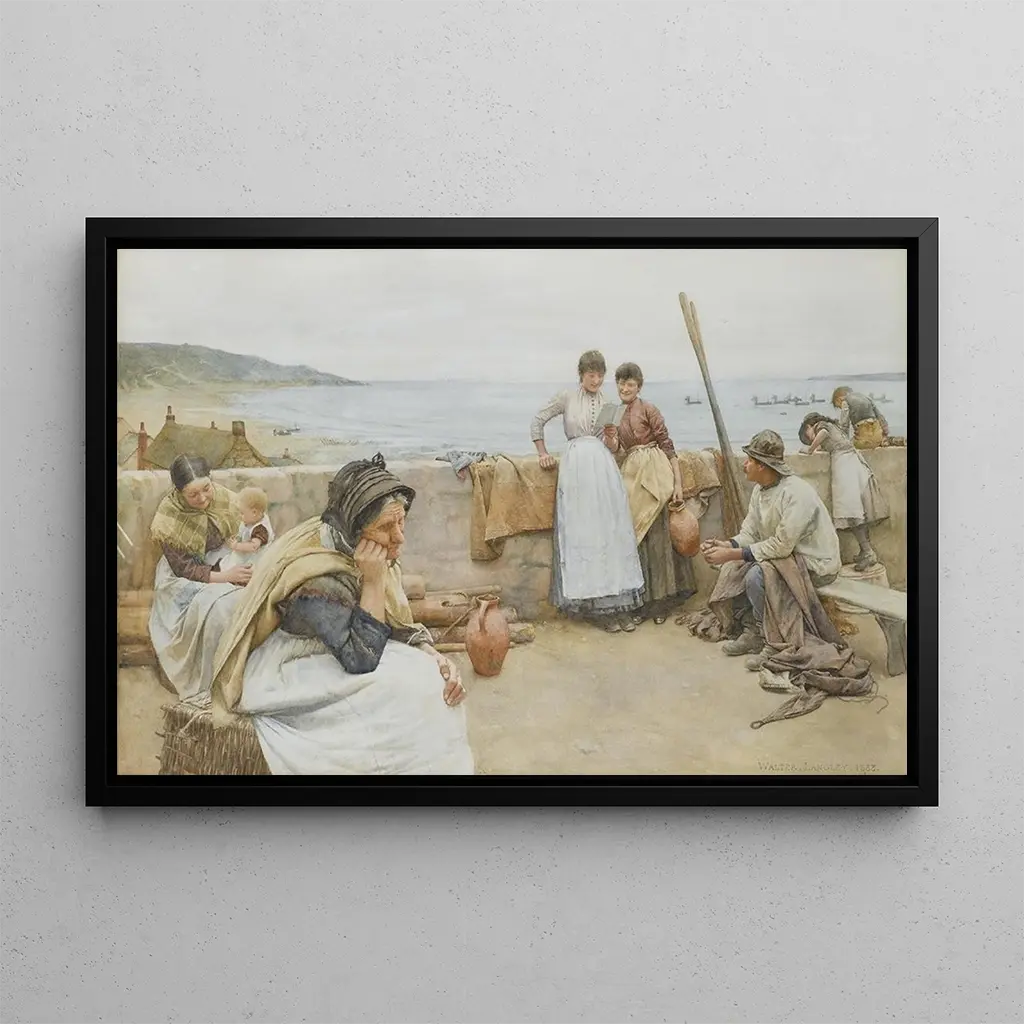 Idylle Dorfszene : ein Gemälde des Landlebens „Idylle Dorfszene“ von Walter Langley beschreibt die Einfachheit und Schönheit des Landlebens. In diesem Werk treffen Figuren in einer pastoralischen Umgebung aufeinander, umgeben von Grün und sanftem Licht. Die Pastellfarben und zarten Nuancen schaffen eine ruhige, fast nostalgische Atmosphäre. Langley verwendet eine Ölmaltechnik, die die natürlichen Texturen hervorhebt, von den Blättern bis zu den Kleidern der Dorfbewohner. Diese friedliche Szene lädt zur Betrachtung ein und erinnert an die einfachen Freuden des Lebens im Freien, bietet einen Moment der Flucht für die Betrachter. Walter Langley: ein Pionier der Präraffaelitenbewegung Walter Langley, geboren 1852 in Birmingham, ist ein britischer Künstler, der mit der Präraffaelitenbewegung verbunden ist. Seine Karriere erstreckt sich hauptsächlich bis zum Ende des 19. Jahrhunderts, einer Zeit, in der er sich durch Darstellungen des Landlebens und englischer Landschaften auszeichnete. Beeinflusst von den Präraffaeliten, sucht Langley, die Schönheit der natürlichen Welt und menschlicher Interaktionen einzufangen. „Idylle Dorfszene“ ist emblematisch für seinen Stil, der Realismus und Romantik verbindet. Langley war auch ein leidenschaftlicher Verfechter der Freilichtmalerei, was ihm ermöglichte, die Essenz der Szenen, die er darstellte, mit großer Authentizität einzufangen. Eine dekorative Anschaffung mit vielfältigen Vorzügen Der Kunstdruck von „Idylle Dorfszene“ ist eine ideale Wahl, um Ihren Wohnraum zu bereichern. Ob im Wohnzimmer, Esszimmer oder Büro – dieses Leinwandbild bringt Ruhe und Charme in Ihr Zuhause. Die Qualität des Kunstdrucks garantiert eine detailgetreue Wiedergabe der Farben und Details des Originalwerks, sodass Sie seine Ästhetik voll genießen können. Durch die Integration dieses Gemäldes in Ihre Dekoration schaffen Sie eine beruhigende Umgebung, die die Schönheit der Natur und die Einfachheit des Landlebens widerspiegelt, und verleihen Ihrem Interieur eine künstlerische Note.