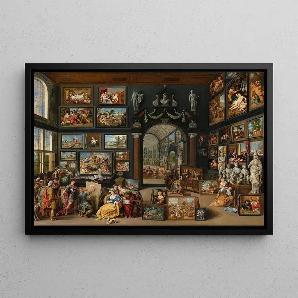 Apelle, der die zeitlose Szene der Schöpfung malt: In diesem faszinierenden Werk ist Apelle, der berühmte Maler der Antike, dargestellt, wie er Campaspe, eine schöne Kurtisane, malt. Die Komposition ist reich an Details, mit lebendigen Farben, die Schönheit und Harmonie hervorrufen. Das Spiel von Licht und Schatten schafft eine Atmosphäre, die sowohl intim als auch dynamisch ist und den Betrachter in den kreativen Prozess eintauchen lässt. Die Maltechnik, die Realismus und Idealisierung verbindet, unterstreicht die Bedeutung der Kunst bei der Darstellung menschlicher Schönheit. Diese kunstdruck-Reproduktion des Gemäldes "Apelle peignant Campaspe" lädt zu einer Reflexion über Kunst und Muse ein und fängt einen Moment reiner Inspiration ein. Willem van Haecht: ein Zeuge der flämischen Renaissance: Willem van Haecht, flämischer Maler des 17. Jahrhunderts, ist bekannt für seine Werke, die die Schönheit der Kunst und der Natur feiern. Beeinflusst von der Tradition der flämischen Malerei, hat er es verstanden, Elemente von Realismus und Symbolismus in seine Kreationen zu integrieren. Er war in Antwerpen tätig und trug zum Aufstieg der Genre-Malerei und mythologischer Szenen bei. Sein Werk "Apelle peignant Campaspe" ist emblematisch für seinen Stil, der technische Feinheit und erzählerische Tiefe vereint. Durch diese kunstdruck-Reproduktion erkennt man die Bedeutung der Kunst in der Kultur seiner Zeit, in der Künstler versuchten, die Schönheit in all ihren Formen zu verewigen. Eine dekorative Anschaffung mit vielfältigen Vorzügen: Diese kunstdruck-Reproduktion des Gemäldes "Apelle peignant Campaspe" ist eine ideale Wahl, um Ihr Interieur zu bereichern. Ob im Wohnzimmer, Büro oder Schlafzimmer, sie verleiht Eleganz und Kultur. Die Druckqualität garantiert eine bemerkenswerte Farbtreue und Detailgenauigkeit des Originalwerks, sodass Sie seine ästhetische Anziehungskraft voll genießen können. Durch die Integration dieses Leinwandbildes in Ihre Dekoration verleihen Sie Ihrem Raum eine künstlerische Dimension, die Neugier und Bewunderung weckt. Es ist ein Stück, das garantiert Blicke auf sich ziehen und Gespräche anregen wird.