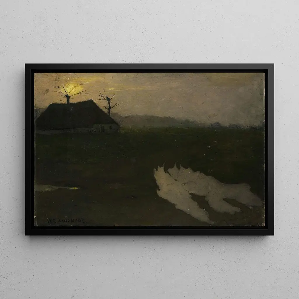 Paysage au clair de lune : eine nächtliche Gelassenheit zum Betrachteten Das Kunstdruck "Paysage au clair de lune" von Richard Nicolas Roland Holst vermittelt eine friedliche und träumerische Atmosphäre. Die sanften Töne von Blau und Silber verschmelzen zu einer bezaubernden nächtlichen Landschaft, in der der Mond die Konturen der Bäume und Hügel zart erleuchtet. Die Technik des Künstlers, der fließende Pinselstriche verwendet, verleiht dem Werk ein Gefühl von Bewegung und Lebendigkeit. Dieser Kunstdruck lädt zur Kontemplation ein und ermöglicht dem Betrachter, in eine Welt der Ruhe zu entfliehen, in der die Natur unter einem Schleier des Geheimnisses offenbart wird. Richard Nicolas Roland Holst: ein Meister des niederländischen Symbolismus Richard Nicolas Roland Holst, niederländischer Maler des frühen 20. Jahrhunderts, ist bekannt für seinen symbolistischen Stil, der Natur und menschliche Emotionen verbindet. Beeinflusst von den künstlerischen Bewegungen seiner Zeit, erforscht er spirituelle und mystische Themen durch seine Werke. Seine Karriere, geprägt von einer Suche nach Schönheit und Wahrheit, steht in einem Kontext, in dem sich die Kunst von akademischen Konventionen befreit. Holst hat die Essenz der Natur eingefangen und gewöhnliche Landschaften in poetische Visionen verwandelt. Sein künstlerisches Erbe bleibt eine Inspirationsquelle für Kunstliebhaber und zeitgenössische Künstler. Eine dekorative Anschaffung mit vielfältigen Vorzügen Der Kunstdruck des "Paysage au clair de lune" ist ein dekoratives Stück, das sich harmonisch in verschiedene Räume integriert, sei es im Wohnzimmer, Büro oder Schlafzimmer. Seine Druckqualität und die Treue zum Originalwerk garantieren eine außergewöhnliche ästhetische Darstellung. Mit diesem Kunstdruck bringen Sie eine Note von Gelassenheit und Poesie in Ihr Zuhause und bereichern Ihre Dekoration. Dieses Leinwandbild, mit seinem zeitlosen Charme, wird Ihre Gäste begeistern und eine beruhigende Atmosphäre schaffen, die zum Träumen und zur Kontemplation einlädt.