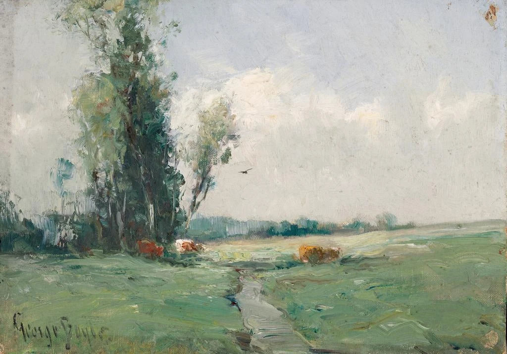George A. Boyle, amerikanischer Maler, der Ende des 19. Jahrhunderts aktiv war, wird oft mit der impressionistischen Bewegung in Verbindung gebracht, die versuchte, die Effekte von Licht und Farbe in der Natur einzufangen. Beeinflusst von den Landschaften seiner Zeit, entwickelte Boyle einen einzigartigen Stil, gekennzeichnet durch schnelle Pinselstriche und eine leuchtende Farbpalette. Seine Werke zeugen von einer besonderen Sensibilität für die Schönheit amerikanischer Landschaften und machen ihn zu einem bedeutenden Vertreter der Landschaftsmalerei seiner Epoche. Der kunstdruck Paysage mit einem Bach veranschaulicht perfekt sein Talent, natürliche Szenen voller Poesie und Sanftheit zu verewigen.