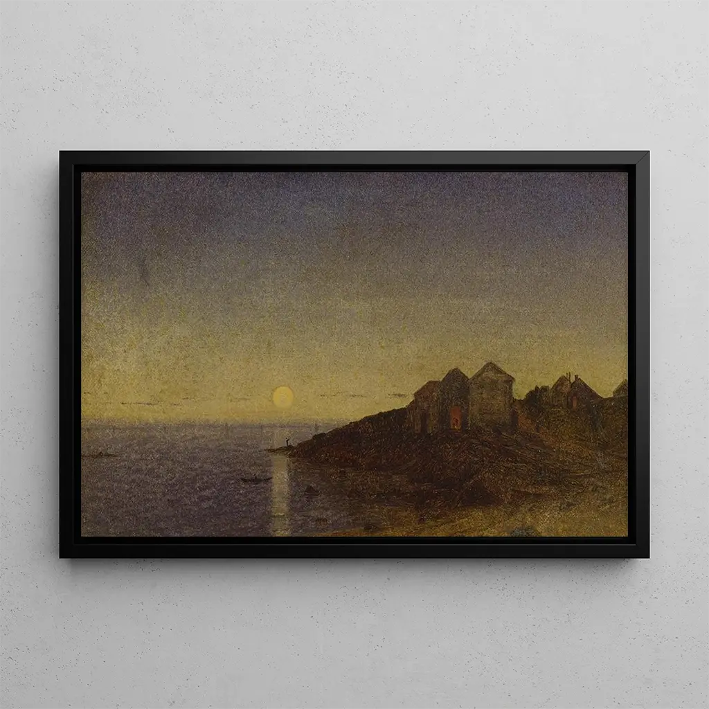 Clair de lune : eine nächtliche serenade Clair de lune, werk von James Augustus Suydam, ruft die Magie einer ruhigen Nacht hervor, durchdrungen vom sanften Licht des Mondes. Dieser zarte kunstdruck fängt eine idyllische Landschaft ein, in der silberne Reflexe auf dem ruhigen Wasser tanzen und eine Traum- und Ruheatmosphäre schaffen. Die Nuancen von Blau und Violett, subtil vermischt, verleihen der Leinwand eine romantische und melancholische Stimmung. Die impressionistische Technik von Suydam, mit ihren fließenden Pinselstrichen, ermöglicht es, die Frische der Nacht und die vergängliche Schönheit der Natur zu spüren. Dieses Gemälde lädt zur Kontemplation und Flucht ein und bietet einen Moment der Gelassenheit für diejenigen, die es betrachten. James Augustus Suydam : ein Pionier des amerikanischen Impressionismus James Augustus Suydam, amerikanischer Maler des 19. Jahrhunderts, wird oft mit der impressionistischen Bewegung in Verbindung gebracht, obwohl er einen eigenen Stil entwickelt hat. Beeinflusst von europäischen Landschaften und Meistern des Impressionismus, konnte Suydam Licht und Atmosphäre mit einer einzigartigen Sensibilität einfangen. Sein Werk, obwohl weniger bekannt als das seiner Zeitgenossen, spielte eine bedeutende Rolle in der Entwicklung der amerikanischen Malerei. Clair de lune, mit seiner poetischen Darstellung der Natur, zeugt von seinem Talent und seiner Fähigkeit, tiefe Emotionen durch Farbe und Licht hervorzurufen. Eine dekorative Anschaffung mit vielfältigen Vorzügen Der kunstdruck von Clair de lune ist ein dekoratives Stück, das jeden Raum verschönern kann, sei es ein Wohnzimmer, ein Büro oder ein Schlafzimmer. Seine Druckqualität und die Treue zu den Nuancen des Originalwerks machen ihn zur idealen Wahl für Liebhaber des impressionistischen Kunststils. Dieses Gemälde, mit seinem beruhigenden Charme, bringt eine Note von Gelassenheit und Poesie in Ihr Zuhause. Durch die Integration dieses Leinwandbildes in Ihre Dekoration schaffen Sie eine Umgebung, die zur Entspannung und Träumerei einlädt, und feiern gleichzeitig die zeitlose Schönheit der nächtlichen Natur.