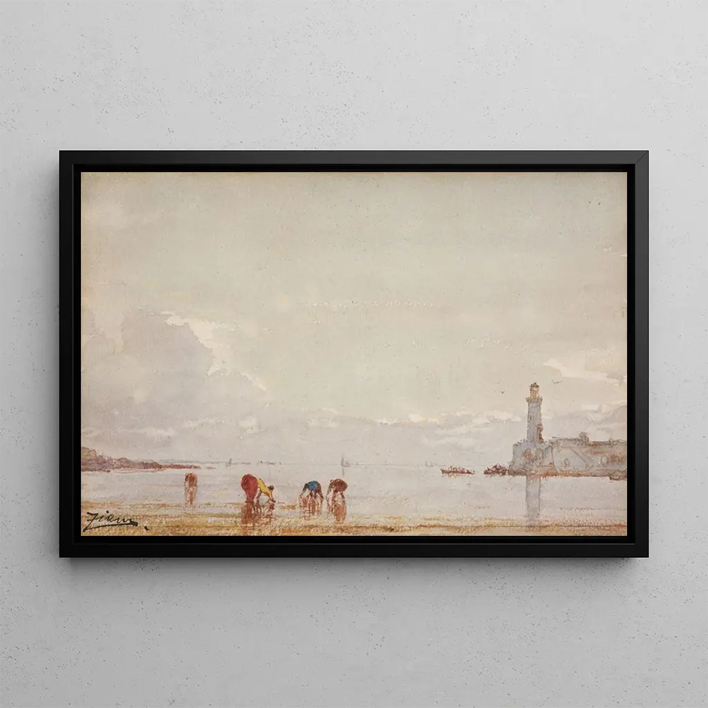 Dans cette œuvre vibrante, Félix Ziem capture l'essence de la Méditerranée avec une palette de couleurs éclatantes. Les pêcheurs, silhouettes délicates, semblent danser au rythme des vagues, tandis que le ciel se teinte de nuances dorées et azurées. La technique de Ziem, mêlant huile et lumière, crée une atmosphère presque éthérée, où chaque coup de pinceau évoque le mouvement de l'eau et la douceur du climat. La composition, équilibrée entre terre et mer, invite le spectateur à s'immerger dans ce tableau, à ressentir la brise marine et à entendre le murmure des vagues.