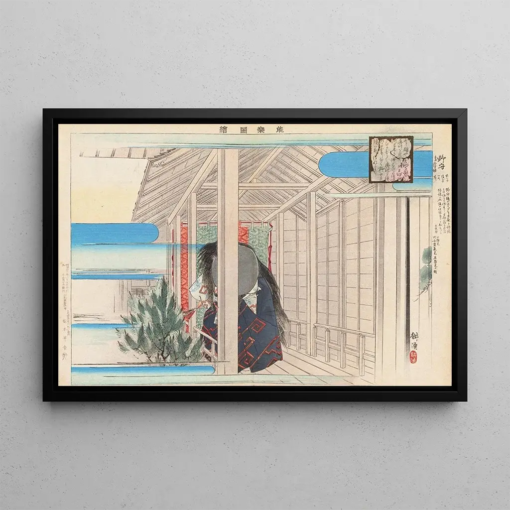 Kōgyo Tsukioka, eine ikonische Figur des ukiyo-e, verstand es, Tradition und Moderne in seinem Werk zu vereinen. Aktiv gegen Ende des 19. und Anfang des 20. Jahrhunderts, wurde er von den sozialen und künstlerischen Veränderungen seiner Zeit beeinflusst, insbesondere von der Öffnung Japans nach Westen. Seine kunstdrucke, wie dieses, zeugen von einer außergewöhnlichen technischen Meisterschaft und einer einzigartigen Sensibilität für die vergängliche Schönheit des Lebens. Tsukioka konnte das Wesen des Noh-Theaters, einer alten Kunstform, einfangen und gleichzeitig eine moderne Note hinzufügen, was ihn zu einem unverzichtbaren Künstler seiner Zeit macht.