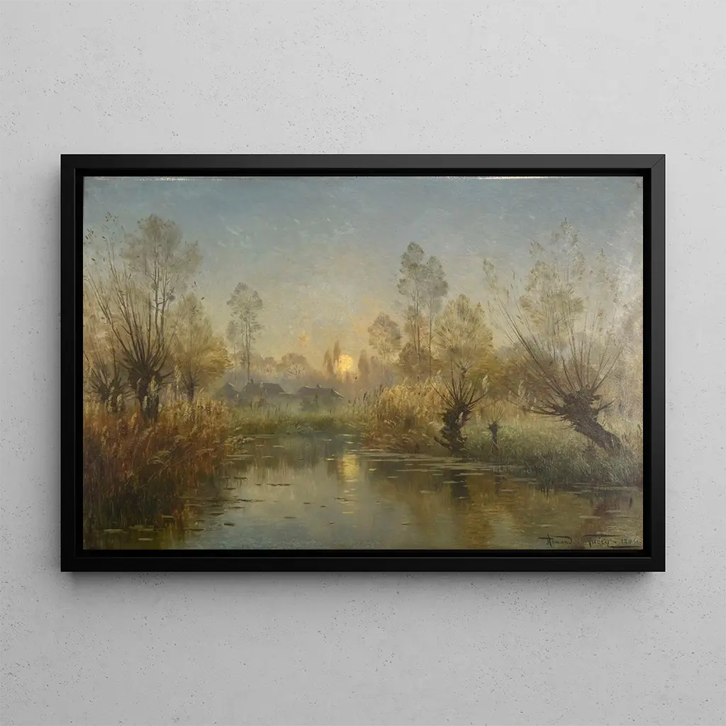 Rivière au coucher de soleil : eine Ode an die aquatische Gelassenheit Die Leinwand "Rivière au soleil couchant" von Armand Gury vermittelt eine ruhige und kontemplative Atmosphäre. Die warmen Farben des Sonnenuntergangs spiegeln sich auf den ruhigen Wassern des Flusses wider und schaffen ein faszinierendes Lichtspiel. Die Nuancen von Orange, Rosa und Violett verschmelzen harmonisch, während die Silhouetten der Bäume am Ufer einen Hauch von Geheimnis hinzufügen. Die Technik von Gury, die Realismus und Impressionismus verbindet, ermöglicht es, die Sanftheit des Moments zu spüren. Dieses Werk lädt den Betrachter ein, zu entfliehen und die vergängliche Schönheit der Natur zu schätzen. Armand Gury : ein Meister des impressionistischen Lichts Armand Gury, aktiv im späten 19. Jahrhundert, ist ein französischer Künstler, dessen Arbeit im impressionistischen Bewegung verankert ist. Beeinflusst von Meistern wie Monet und Sisley, konnte Gury seinen eigenen Stil entwickeln, der durch eine mutige Verwendung von Farbe und Licht gekennzeichnet ist. Seine Werke, oft inspiriert von der Natur, fangen flüchtige Momente des Alltagslebens ein. Obwohl er weniger bekannt ist als einige seiner Zeitgenossen, hat Gury einen bedeutenden Eindruck in der französischen Kunstlandschaft hinterlassen und zeigt die Schönheit der Landschaften durch einen leuchtenden und lebendigen Ansatz. Eine dekorative Anschaffung mit vielfältigen Vorzügen Der kunstdruck von "Rivière au soleil couchant" ist eine ideale Wahl, um eine Note der Gelassenheit in Ihr Zuhause zu bringen. Ob im Wohnzimmer, im Büro oder im Schlafzimmer, diese Leinwand schafft eine beruhigende und warme Atmosphäre. Die Druckqualität garantiert eine außergewöhnliche Farbtreue und Detailgenauigkeit des Originalwerks, sodass Sie die Magie dieser Szene voll genießen können. Mit ihrem unbestreitbaren ästhetischen Reiz fügt sich dieser kunstdruck perfekt in verschiedene Einrichtungsstile ein, vom klassischen bis zum modernen, und verleiht Ihrem Wohnraum eine poetische Note.