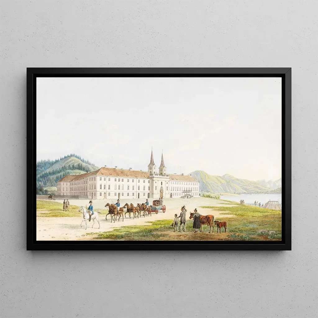 Château de Tegernsee : eine Symphonie aus Natur und Architektur Der Kunstdruck "Château de Tegernsee" entführt den Betrachter in eine verzauberte Landschaft, in der die Majestät der Architektur mit der natürlichen Schönheit der Umgebung verschmilzt. Die sanften Töne von Grün und Blau erzeugen eine ruhige Atmosphäre, während die detaillierten Elemente des Schlosses, mit seinen schrägen Dächern und verzierten Fenstern, das Auge fesseln. Die Technik des Künstlers, die geschickt Aquarell und Öl kombiniert, schafft eine beeindruckende Tiefe und erweckt diesen ikonischen Ort zum Leben. Jeder Pinselstrich scheint eine Geschichte zu erzählen und lädt zur Betrachtung und Flucht in diese idyllische Kulisse ein. Heinrich Adam : der Zeuge einer romantischen Epoche Heinrich Adam, aktiv im 19. Jahrhundert, ist bekannt für seine romantischen Landschaften, die die Schönheit natürlicher und architektonischer Stätten feiern. Beeinflusst von der romantischen Bewegung, konnte er die Essenz der Orte, die er malte, einfangen, wobei er den Fokus auf die Harmonie zwischen Mensch und Natur legte. Seine Werke, oft inspiriert von Reisen durch Europa, offenbaren eine besondere Sensibilität für Licht und Atmosphäre. Adam hinterließ ein nachhaltiges Erbe und beeinflusste zahlreiche zeitgenössische Künstler, die versuchten, die Pracht europäischer Landschaften zu verewigen. Eine dekorative Anschaffung mit vielfältigen Vorzügen Der Kunstdruck des "Château de Tegernsee" ist ein dekoratives Stück, das jeden Raum bereichern wird, sei es im Wohnzimmer, im Büro oder im Schlafzimmer. Die Druckqualität garantiert eine bemerkenswerte Treue zu den Farben und Details des Originalwerks und bietet somit einen unbestreitbaren ästhetischen Reiz. Durch die Integration dieses Kunstdrucks in Ihre Dekoration verleihen Sie Ihrem Raum eine Note von Eleganz und Gelassenheit und erinnern gleichzeitig an die Geschichte und Kultur einer vergangenen Epoche. Dieser Kunstdruck ist viel mehr als nur eine Dekoration – er ist eine Einladung, zu träumen und in die Natur einzutauchen.