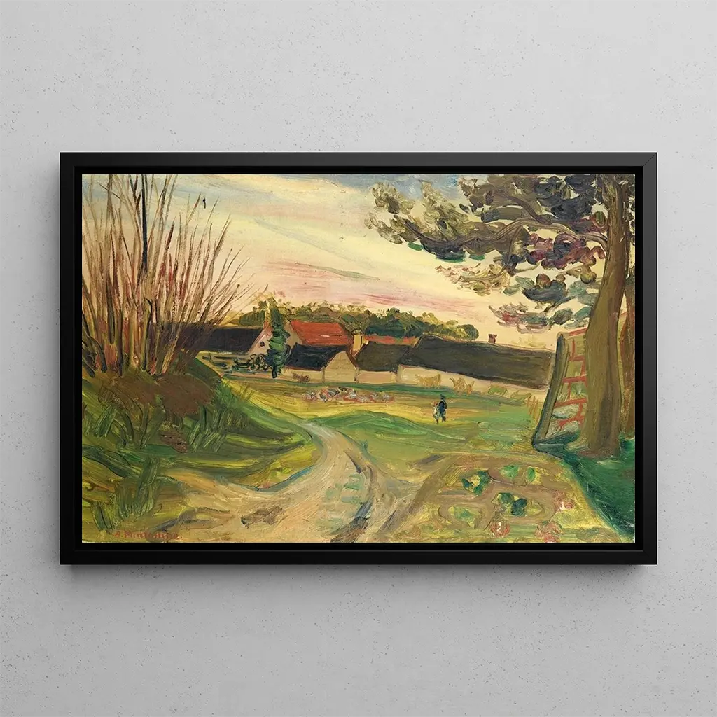 Promeneurs devant une ferme : eine idyllische Szene voller Gelassenheit Die kunstdruck des Gemäldes Promeneurs devant une ferme von Abraham Mintchine vermittelt eine friedliche und nostalgische Atmosphäre. In diesem Werk zeigt Mintchine eine ländliche Szene, in der Figuren ruhig vor einer Farm spazieren gehen, umgeben von grüner Natur. Die sanften Farben und zarten Nuancen schaffen eine visuelle Harmonie, die zur Betrachtung einlädt. Die detaillierten Darstellungen der Bäume und der Struktur der Farm zeugen vom Talent des Künstlers, die Schönheit ländlicher Landschaften einzufangen. Dieses Bild ruft eine Rückkehr zur Einfachheit und Ruhe hervor, fernab vom Trubel des Stadtlebens. Abraham Mintchine: ein Künstler zwischen Tradition und Moderne Abraham Mintchine, ein russischer Maler, hat sich im frühen 20. Jahrhundert auf der Kunstszene etabliert. Sein Stil, beeinflusst vom Postimpressionismus, zeichnet sich durch eine sensible Herangehensweise an Landschaften und Szenen des Alltags aus. Mintchine hat häufig die Themen Natur und Ländlichkeit erforscht, um die Schönheit einfacher Momente auszudrücken. Promeneurs devant une ferme veranschaulicht perfekt diese Suche nach Authentizität und Verbindung zur natürlichen Welt. Sein Werk spiegelt eine Epoche wider, in der sich die Kunst von Konventionen befreite, dabei aber tief in ästhetischen Werten verwurzelt blieb. Eine dekorative Anschaffung mit vielfältigen Vorteilen Eine kunstdruck-Reproduktion des Gemäldes Promeneurs devant une ferme zu wählen, bedeutet, eine Note von Gelassenheit in Ihren Wohnraum zu bringen. Ob im Wohnzimmer, im Büro oder im Schlafzimmer, dieses Bild ruft Frieden und die Schönheit der Natur hervor und schafft eine beruhigende Atmosphäre. Die Qualität der Reproduktion garantiert eine Treue zu den Farben und Details des Originalwerks, sodass Sie das Talent von Abraham Mintchine voll genießen können. Mit ihrer ästhetischen Anziehungskraft wird dieses Werk zu einem zentralen Element Ihrer Dekoration, das zum Träumen und Entfliehen in eine idyllische Welt einlädt.