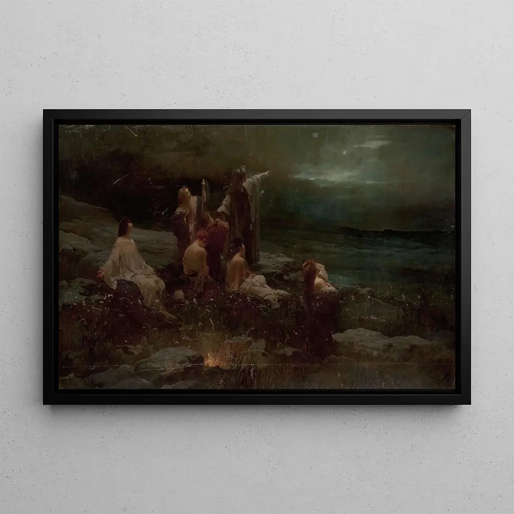 Étoile du matin : ein Hauch himmlischen Lichts Das Kunstwerk "Étoile du matin" von Franciszek Żmurko ist eine wahre Ode an die Schönheit des Tagesanbruchs. Die Komposition, getaucht in goldene und pastellfarbene Töne, evoziert eine ruhige und poetische Atmosphäre. Die zarten Details der Figuren sowie das Lichtspiel, das den Himmel erleuchtet, schaffen ein Gefühl des Staunens. Die Technik Żmurkos, die Realismus und Romantik verbindet, lädt den Betrachter ein, in eine Welt einzutauchen, in der Natur und Menschheit harmonisch aufeinandertreffen. Jeder Pinselstrich scheint die Essenz der Morgendämmerung einzufangen und bietet ein fesselndes visuelles Erlebnis. Franciszek Żmurko : ein Meister des polnischen Romantismus Franciszek Żmurko, polnischer Maler des 19. Jahrhunderts, ist bekannt für seinen romantischen Stil, der von Empfindsamkeit geprägt ist. Beeinflusst von den großen Meistern der europäischen Malerei, entwickelte er einen einzigartigen Ansatz, der Feinheit und Emotion vereint. Seine Karriere, geprägt von ikonischen Werken, zeugt von seinem Engagement für Schönheit und Harmonie. Żmurko war auch ein leidenschaftlicher Verfechter der polnischen Kunst und trug zur Entstehung einer nationalen künstlerischen Identität bei. Sein Erbe lebt durch Werke wie "Étoile du matin" weiter, die weiterhin Künstler und Kunstliebhaber inspirieren und bewegen. Eine dekorative Anschaffung mit vielfältigen Vorzügen Die Wahl einer Kunstdruck-Reproduktion von "Étoile du matin" ist eine kluge Entscheidung, um Ihr Zuhause aufzuwerten. Ob im Wohnzimmer, Büro oder Schlafzimmer – dieses Bild verleiht Eleganz und Ruhe. Die Qualität der Reproduktion garantiert eine bemerkenswerte Treue zu den Originaldetails, sodass Sie die bezaubernde Atmosphäre des Werks voll genießen können. Mit seinem unbestreitbaren ästhetischen Reiz fügt sich dieses Kunstwerk harmonisch in verschiedene Einrichtungsstile ein und ist eine wertvolle Ergänzung Ihrer Kunstsammlung.