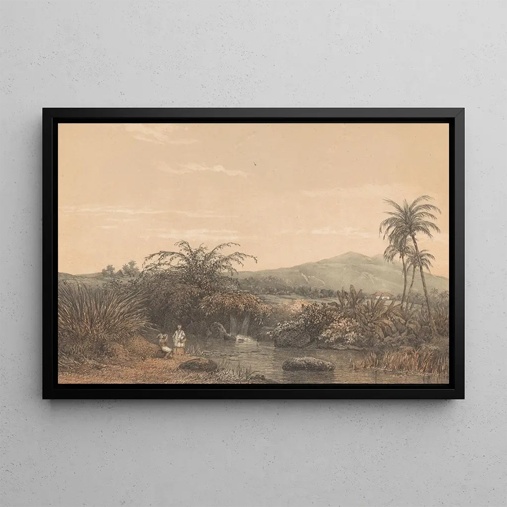Die "Vue sur Tjileboet" von Johan Conrad Greive entführt den Betrachter in eine üppige indonesische Landschaft. Dieses Gemälde, reich an Details, zeigt eine Szene, in der die Natur in ihrer ganzen Pracht erblüht. Die lebendigen Grüntöne des Laubs verbinden sich mit den sanften Nuancen des Himmels und schaffen eine Atmosphäre von Frieden und Harmonie. Die Technik von Greive, die Realismus mit impressionistischen Akzenten verbindet, vermittelt die Wärme und Feuchtigkeit dieses idyllischen Ortes. Dieses Werk lädt zu einer sinnlichen Flucht ein, bei der jeder Blick eine neue Facette dieser bezaubernden Landschaft offenbart.
