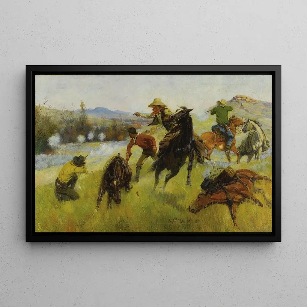 Tir depuis la Lisière de la forêt : eine Eintauchen in die wilde Natur Dieses Werk mit dem Titel "Tir depuis la lisière de la forêt" entführt uns in eine Landschaft, in der die Natur in ihrer ganzen Pracht offenbart wird. Die erdigen Farben und die Grüntöne vermitteln die Ruhe eines dichten Waldes, während das Licht mit den Schatten spielt und eine Atmosphäre schafft, die sowohl mystisch als auch beruhigend ist. Die Technik von Gollings, geprägt von einem beeindruckenden Realismus, ermöglicht es den Betrachtern, die Frische der Luft und das Rascheln der Blätter zu spüren. Jedes Detail, von den majestätischen Baumstämmen bis zu den zarten Blättern, trägt zu einer harmonischen Komposition bei, die zur Flucht einlädt. Elling William Gollings: ein Meister der amerikanischen Landschaftsmalerei Elling William Gollings, aktiv Ende des 19. und Anfang des 20. Jahrhunderts, ist bekannt für seine Fähigkeit, die wilde Schönheit des amerikanischen Westens einzufangen. Beeinflusst vom Realismus, konnte er die natürlichen Landschaften mit erstaunlicher Präzision wiedergeben. Seine Werke spiegeln eine Epoche wider, in der die Natur noch weitgehend unerforscht war, und er spielte eine Schlüsselrolle bei der Dokumentation dieser Landschaften, bevor sie durch die Industrialisierung verändert wurden. Gollings wurde auch von den künstlerischen Traditionen der großen europäischen Meister beeinflusst, entwickelte aber einen eigenen Stil, der in der amerikanischen Kultur verwurzelt ist. Eine dekorative Anschaffung mit vielfältigen Vorteilen Der kunstdruck von "Tir depuis la lisière de la forêt" ist eine ideale dekorative Wahl für verschiedene Räume, sei es im Wohnzimmer, im Büro oder im Schlafzimmer. Seine Druckqualität und die Treue zu den Originalfarben machen dieses Leinwandbild zu einem echten ästhetischen Plus. Durch die Integration dieses Werks in Ihre Dekoration bringen Sie einen Hauch von Natur und Ruhe in Ihr Zuhause. Die visuelle Anziehungskraft dieses kunstdrucks, mit seinen detaillierten Feinheiten und seiner ruhigen Atmosphäre, wird Ihre Gäste begeistern und Ihre tägliche Umgebung bereichern.