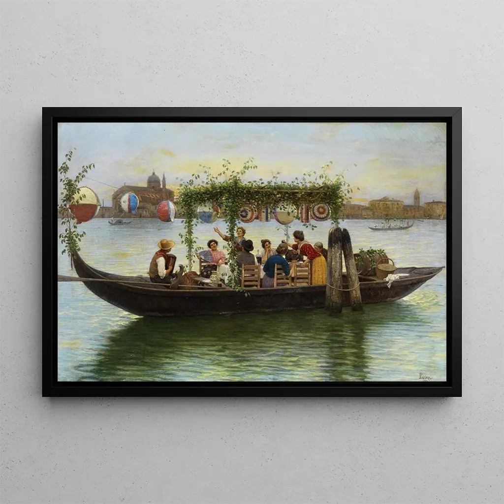 Bei dem Fest des Erlösers: eine lebendige Feier des Lebens Das Werk "Bei dem Fest des Erlösers" von Luigi Pastega taucht uns in eine festliche und farbenfrohe Atmosphäre ein, in der die Figuren zu tanzen scheinen im Rhythmus der kollektiven Freude. Die leuchtenden Farben, die von tiefroten bis zu hellgelben Tönen reichen, schaffen einen beeindruckenden Kontrast, der sofort ins Auge fällt. Die Technik des Künstlers, die Realismus und impressionistische Akzente verbindet, erweckt jedes Detail zum Leben, von lächelnden Gesichtern bis zu den Falten der Kleidung. Dieses Gemälde evoziert eine Szene der Geselligkeit, bei der man fast das Geräusch von Lachen und Gesang hört, und lädt den Betrachter ein, diesen Moment des Glücks zu teilen. Luigi Pastega: ein Meister des Festes und der Emotionen Luigi Pastega, italienischer Maler des frühen 20. Jahrhunderts, ist bekannt für seine Fähigkeit, die Essenz der volkstümlichen Feierlichkeiten einzufangen. Beeinflusst vom impressionistischen Bewegung, hat er es verstanden, Elemente der italienischen Kultur in seine Werke zu integrieren, wodurch jedes Bild ein Fenster zum Alltag seiner Zeit wird. Sein Stil, lebendig und farbintensiv, spiegelt eine Epoche wider, in der die Kunst danach strebte, authentische Emotionen auszudrücken und die einfachen Momente des Lebens zu feiern. Pastega hat sich einen Namen gemacht durch seine Darstellungen traditioneller Feste und wurde so zu einer unverzichtbaren Figur der volkstümlichen Kunst. Eine dekorative Reproduktion mit vielfältigen Vorzügen Der Kunstdruck "Bei dem Fest des Erlösers" ist eine Leinwand, die Ihrem Zuhause eine fröhliche Note verleihen wird, sei es im Wohnzimmer, im Büro oder im Schlafzimmer. Die Druckqualität garantiert eine Treue zu den Farben und Details des Originalwerks, sodass Sie die Energie, die davon ausgeht, voll genießen können. Mit dieser Arbeit entscheiden Sie sich für ein Bild, das nicht nur Ihren Raum verschönert, sondern auch eine Geschichte erzählt – die Freude am Leben und die Traditionen. Seine ästhetische Anziehungskraft macht es zu einer idealen Wahl für alle, die ihre Dekoration mit einem lebendigen Stück bereichern möchten.