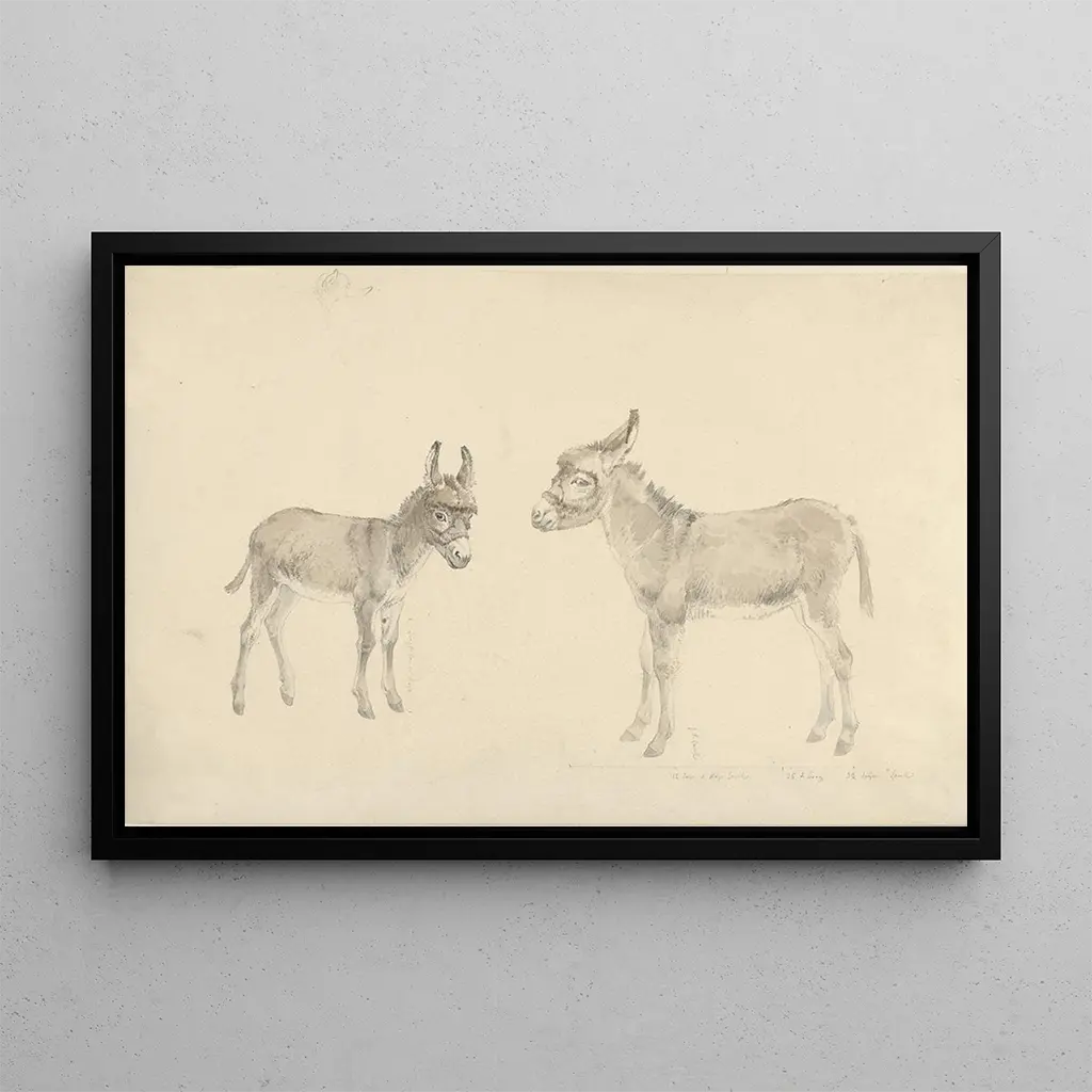 Deux Esel : eine idyllische Szene voller Gelassenheit In dieser Kunstdruckversion von Zwei Esel entführt uns Josephus Augustus Knip in eine friedliche Landschaft, in der Natur und Tiere harmonisch zusammenleben. Die Esel, mit großer Feinfühligkeit dargestellt, scheinen in einer grünen Umgebung zu gedeihen, die von sanftem Licht durchflutet wird. Die Farbpalette, geprägt von beruhigenden Grüntönen und Erdfarben, schafft eine Atmosphäre der Ruhe. Die Technik des Künstlers, die Realismus und Empfindsamkeit verbindet, lässt die Sanftheit der Szene spüren und lädt den Betrachter ein, innezuhalten und diesen einfachen, authentischen Moment des Lebens zu bewundern. Josephus Augustus Knip : ein Meister der Tierlandschaft Josephus Augustus Knip, niederländischer Maler des 19. Jahrhunderts, ist bekannt für seine Werke, die Tiere in ihrer natürlichen Umgebung zeigen. Beeinflusst von der romantischen Bewegung, konnte er die Essenz von Fauna und Flora mit bemerkenswerter Präzision einfangen. Seine Karriere, geprägt von Reisen durch Europa, ermöglichte es ihm, verschiedene Stile und Techniken zu erforschen. Knip hinterließ ein bedeutendes Erbe im Bereich der Tierkunst, und seine Werke inspirieren weiterhin Kunstliebhaber und Sammler. Der Kunstdruck von Zwei Esel zeugt von seinem Talent und seinem Engagement, die Schönheit der natürlichen Welt darzustellen. Eine dekorative Anschaffung mit vielfältigen Vorzügen Der Kunstdruck von Zwei Esel ist ein dekoratives Stück, das in verschiedenen Wohnbereichen seinen Platz finden wird, sei es im Wohnzimmer, Büro oder Schlafzimmer. Die Druckqualität garantiert eine detailgetreue Wiedergabe des Originalwerks und bietet gleichzeitig eine unverkennbare ästhetische Anziehungskraft. Dieses Bild bringt eine Note von Gelassenheit und Natur in Ihr Zuhause und schafft eine warme, einladende Atmosphäre. Mit der Wahl dieses Leinwandbildes entscheiden Sie sich für ein Werk, das nicht nur Ihre Dekoration verschönert, sondern auch eine tiefe Verbindung zur Schönheit der Tierwelt evoziert.