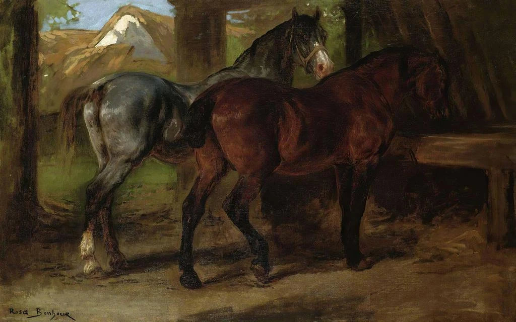 Zwei Pferde in einer Stallung - Rosa Bonheur