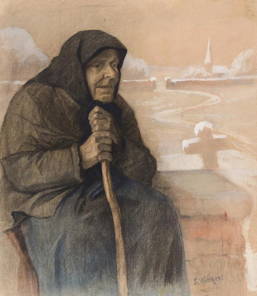 Alte Frau mit einem Stock - Lilly Walther Source: Vieille femme avec un bâton - Lilly Walther