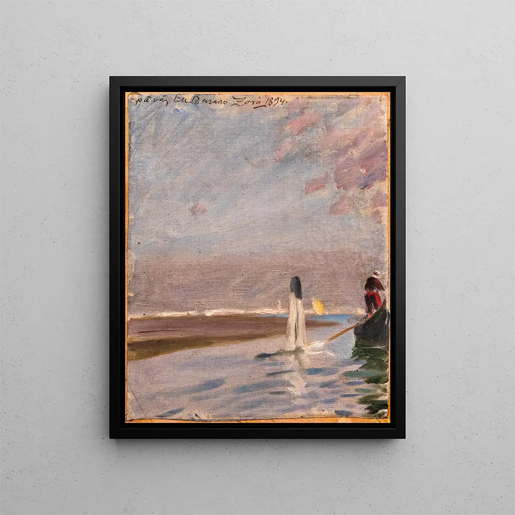 Im weiten Panorama der Kunstgeschichte gelingt es manchen Werken, ihre Epoche zu transzendieren und die Essenz eines Ortes, einer Kultur oder eines Moments einzufangen. "Auf dem Weg nach Burano", geschaffen vom schwedischen Meister Anders Zorn, ist ein perfektes Beispiel dafür. Dieses Gemälde, durchdrungen von Licht und Bewegung, evoziert nicht nur die malerische Schönheit der Insel Burano, sondern lädt den Betrachter auch zu einer Eintauchen in die lebendige Atmosphäre der venezianischen Lagune ein. Das Auge wird von den schillernden Nuancen des Meeres und der bunten Häuser getragen, während die menschlichen Figuren, gekleidet in traditionelle Kostüme, eine alltägliche Szene voller Poesie zu leben scheinen. Zorn bietet uns durch dieses Werk eine visuelle Reise, die den einfachen Rahmen der Malerei übersteigt.