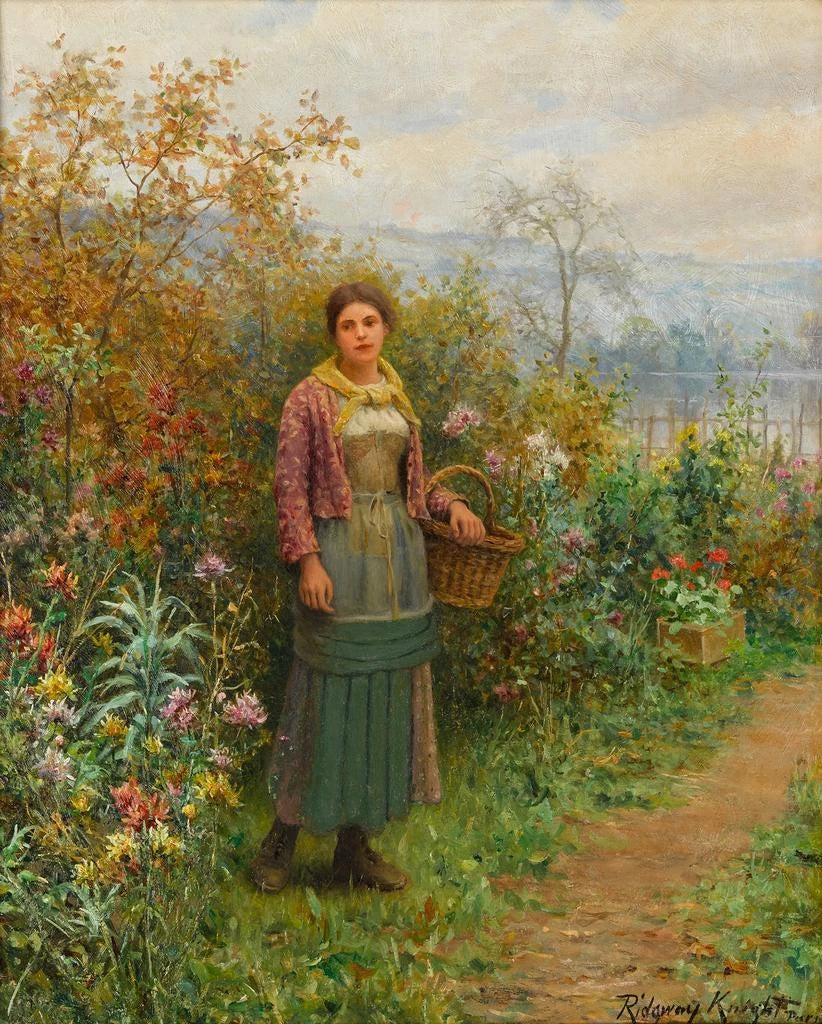 Daniel Ridgway Knight, eine ikonische Figur der amerikanischen Kunst des 19. Jahrhunderts, hat sich durch sein außergewöhnliches Talent und seine einzigartige Vision in der Welt der Malerei etabliert. Ausgebildet an der École des Beaux-Arts in Paris, wurde er von den impressionistischen Meistern beeinflusst, entwickelte jedoch seinen eigenen unverwechselbaren Stil. Sein Werk zeichnet sich durch eine besondere Aufmerksamkeit für die Natur und das Landleben aus, was seine Liebe zur Einfachheit und Authentizität widerspiegelt. Knight war auch ein Pionier in der Darstellung von Frauen in Alltagsszenen und bot eine neue Perspektive auf ihre Rolle in der Gesellschaft. Seine Fähigkeit, die Schönheit der Landschaft mit Momenten menschlicher Intimität zu verbinden, hat einen unauslöschlichen Eindruck hinterlassen.