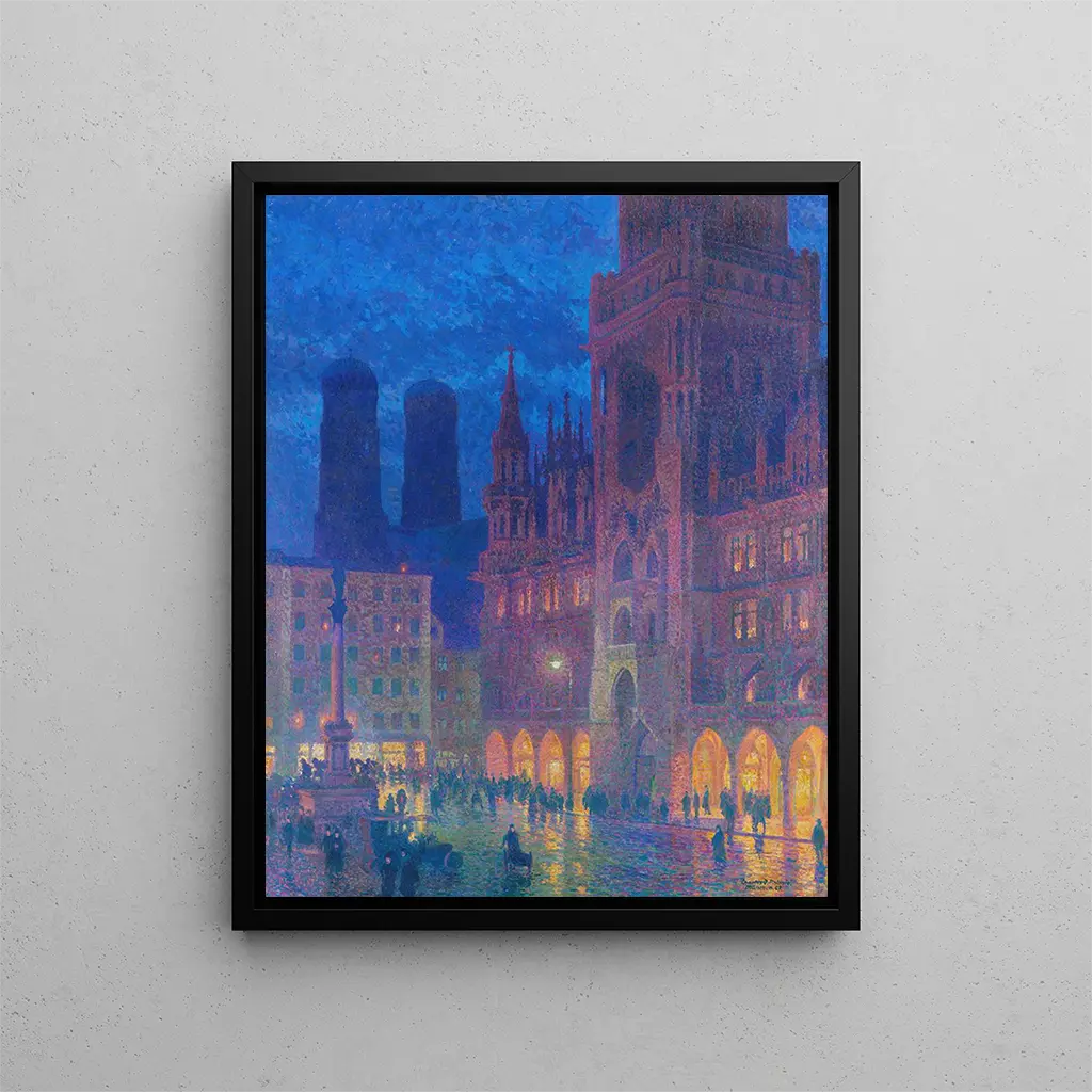 Reproduktion Marienplatz de Munich - Charles Johann Palmi – Einführung fesselnd Am Schnittpunkt zwischen Geschichte und Kunst lädt die Reproduktion Marienplatz von München - Charles Johann Palmi zu einer sensorischen Reise ins Herz der bayerischen Hauptstadt ein. Dieses Werk, geprägt von einer lebendigen Atmosphäre, ruft das pulsierende Leben des berühmten Münchner Platzes hervor, wo Vergangenheit und Gegenwart in einem harmonischen Ballett aufeinandertreffen. Die sorgfältig von Palmi wiedergegebenen Details versetzen den Betrachter in einen Moment der Kontemplation, in dem jeder Stein, jedes Gesicht eine Geschichte zu erzählen scheint. Beim Betrachten dieser Reproduktion spürt man die Energie, die von dieser urbanen Szene ausgeht – ein wahrer Spiegel einer reichen Kultur und eines lebendigen Erbes. Stil und Einzigartigkeit des Werks Der Stil von Charles Johann Palmi zeichnet sich durch seinen beeindruckenden Realismus und seine Fähigkeit aus, das Wesen des Alltagslebens einzufangen. In diesem Werk offenbaren die lebendigen Farben und das Spiel mit dem Licht eine technische Meisterschaft, die den bloßen Akt des Malens übertrifft. Die dynamische Komposition, bei der die Figuren um den Platz herum lebendig werden, erzeugt eine Bewegung, die den Blick und den Geist anzieht. Jedes Detail, sei es die Fassaden der historischen Gebäude oder die Ausdrücke der Passanten, trägt zu einer Atmosphäre bei, die sowohl warmherzig als auch lebendig ist. Die Reproduktion Marienplatz von München - Charles Johann Palmi ist nicht nur ein eingefrorenes Bild; sie ist ein offenes Fenster in eine Welt, in der Kunst und Realität auf zarte und poetische Weise verschmelzen. Der Künstler und sein Einfluss Charles Johann Palmi, ein Künstler mit vielfältigem Talent, hat sich in der Kunstszene durch seine einzigartige Vision und seine sensible Herangehensweise an die Malerei etabliert. Geboren in einem Umfeld, in dem die Kunst im Wandel war, konnte er die Einflüsse seiner Zeit integrieren und gleichzeitig eine eigene Identität bewahren. Seine Faszination für das urbane Leben und sein Wunsch, flüchtige Momente festzuhalten, machen ihn zu einem aufmerksamen Beobachter seiner Zeit. Durch seine Werke gelingt es Palmi, einen Dialog zwischen Vergangenheit und Gegenwart zu schaffen und den Betrachter zum Nachdenken über die Entwicklung von Städten und Gesellschaften einzuladen. Sein Einfluss ist noch heute spürbar und inspiriert zahlreiche Künstler, die Themen des Alltagslebens und der Architektur durch eine sowohl persönliche als auch universelle Linse zu erforschen. Eine Wanddekoration