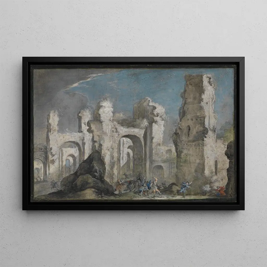 Kunstdruck | Römische Ruinen mit Angriff - Johann Wilhelm Baur