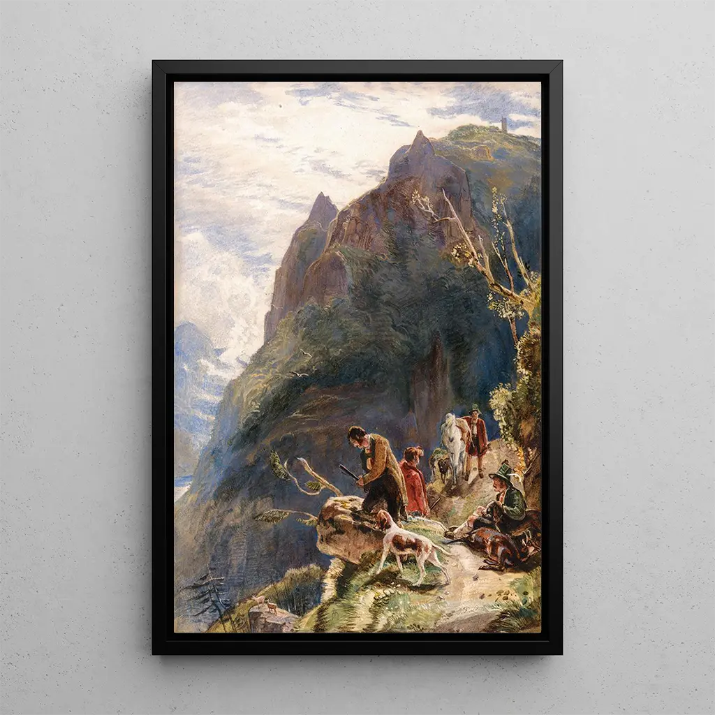 In diesem faszinierenden Werk taucht uns John Frederick Lewis in das Herz der majestätischen Alpen ein, wo tyrolische Jäger, gekleidet in traditionelle Trachten, stolz stehen. Die Komposition ist reich an Details, jedes Element wird mit bemerkenswerter Präzision wiedergegeben. Die Farben, die von den tiefgrünen Bergen bis zu den warmen Brauntönen der Kleidung reichen, schaffen eine Atmosphäre, die zugleich lebendig und ruhig ist. Die Aquarelltechnik, die Lewis meisterhaft beherrscht, ermöglicht es, Licht und Schatten einzufangen und der Szene eine fast tastbare Dimension zu verleihen. Dieses Gemälde lädt dazu ein, die wilde Schönheit und die Kultur der Tyroler zu erkunden.