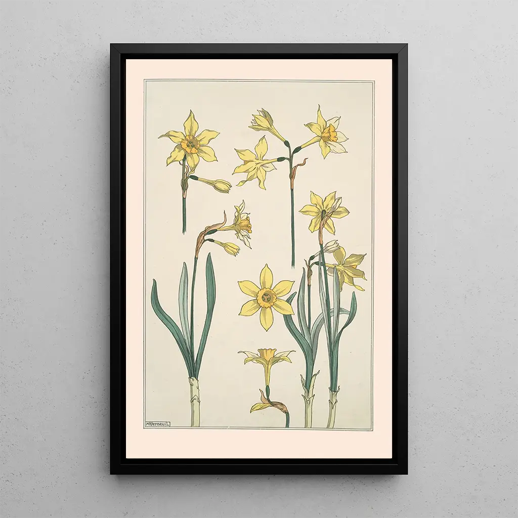 Jonquille : eine Explosion von Licht und Farbe Die kunstdruck von Maurice Pillard Verneuil ist ein lebendiges Werk, das die Essenz des Frühlings einfängt. Die gelben Blumen, strahlend vor Leben, scheinen im Licht zu tanzen, während die Nuancen von Grün und Blau im Hintergrund einen üppigen Garten hervorrufen. Die Technik des Künstlers, die Aquarell und Öl kombiniert, schafft eine sanfte und träumerische Atmosphäre, die den Betrachter einlädt, in eine Welt natürlicher Schönheit einzutauchen. Jede Blüte ist zart detailliert, und die harmonische Komposition zieht den Blick auf sich und bietet ein beruhigendes und fröhliches visuelles Erlebnis. Maurice Pillard Verneuil : ein Meister des Jugendstils Maurice Pillard Verneuil, aktiv am Ende des 19. und Anfang des 20. Jahrhunderts, ist ein emblematischer Vertreter des Jugendstils. Beeinflusst von der Natur und organischen Formen, zeichnet sich seine Arbeit durch florale Motive und geschwungene Linien aus. Verneuil konnte den Geist seiner Zeit einfangen, in der Kunst und Handwerk verschmolzen, und trug dazu bei, die dekorative Ästhetik zu popularisieren. Seine innovative Herangehensweise hat die Gemüter bewegt, und seine Werke inspirieren weiterhin zeitgenössische Künstler. Der kunstdruck von Jonquille zeugt von seinem außergewöhnlichen Talent und seinem Engagement für natürliche Schönheit. Eine dekorative Anschaffung mit vielfältigen Vorzügen Der kunstdruck des Gemäldes Jonquille ist eine ideale Wahl, um Ihr Zuhause zu verschönern, sei es im Wohnzimmer, Büro oder Schlafzimmer. Seine helle und fröhliche Farbpalette bringt Frische und Vitalität in jeden Raum. Die Druckqualität garantiert eine bemerkenswerte Treue zu den Farben und Details des Originalwerks, sodass Sie die Kunst von Verneuil voll genießen können. Mit diesem Leinwandbild fügen Sie nicht nur ein dekoratives Element hinzu, sondern auch ein Gesprächsthema, das Eleganz und die Schönheit des Jugendstils evoziert.
