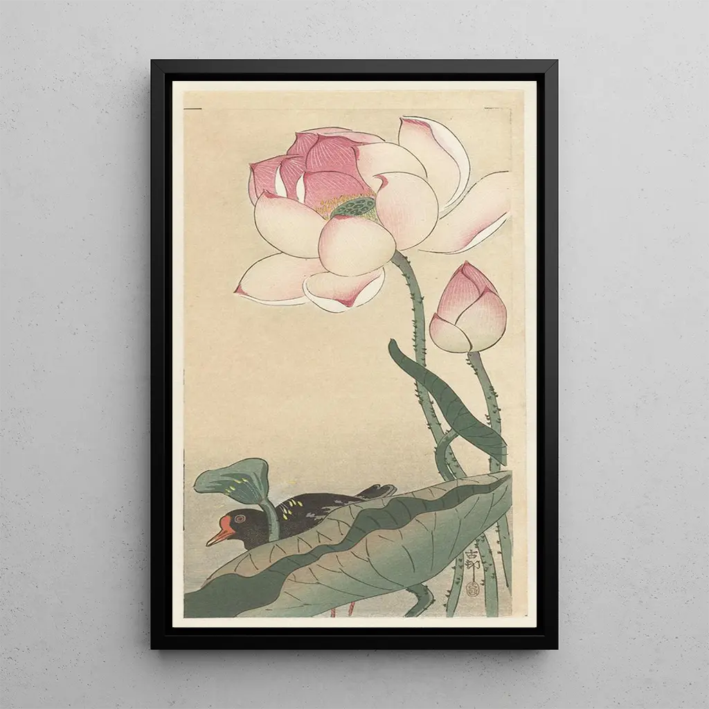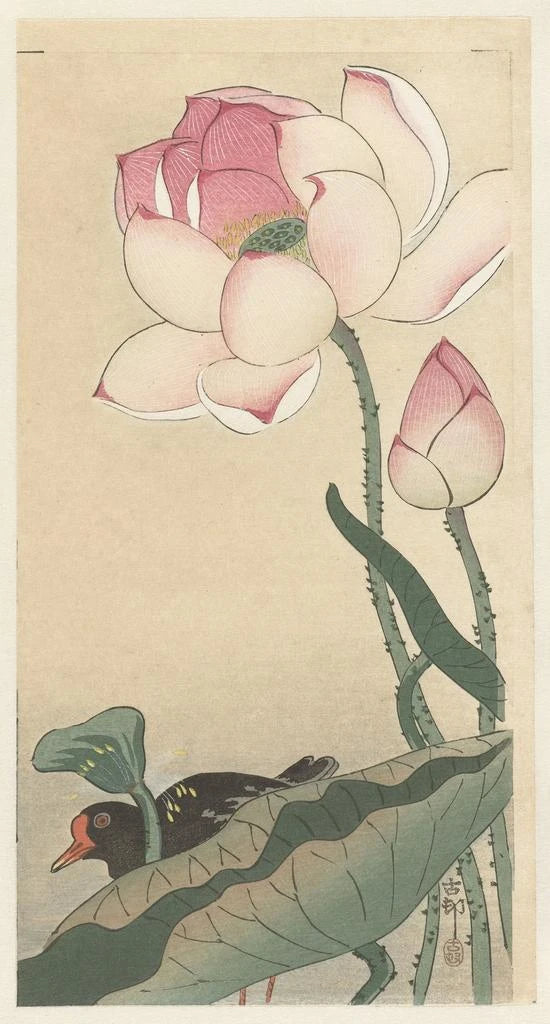 Kunstdruck | Teichhuhn mit Lotusblumen - Ohara Koson