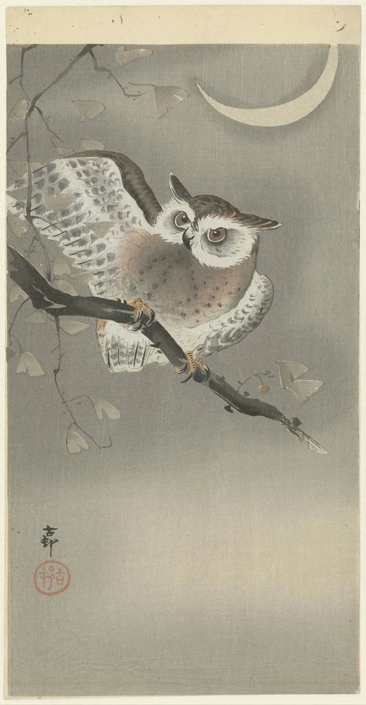 Kunstdruck | Mittel-Eulenkauz in einem Ginkgo - Ohara Koson