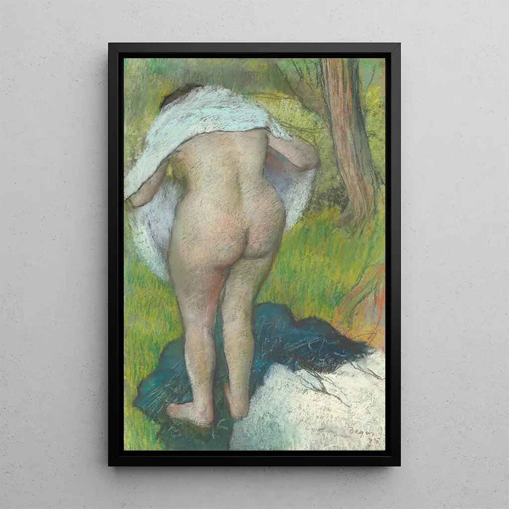 Edgar Degas, geboren 1834, wird oft mit der impressionistischen Bewegung in Verbindung gebracht, obwohl er einen Stil entwickelt hat, der dieses Etikett übertrifft. Seine Leidenschaft für Tanz, Theater und das urbane Leben hat sein Werk geprägt und ihn zu einem aufmerksamen Beobachter der menschlichen Bedingung gemacht. "Junge Frau beim Ankleiden" veranschaulicht perfekt sein Interesse an der Darstellung von Frauen in Momenten von Verletzlichkeit und Schönheit. Durch seine Werke konnte Degas das Wesen der Moderne einfangen, viele Künstler beeinflussen und ein nachhaltiges Erbe in der Kunstwelt hinterlassen.