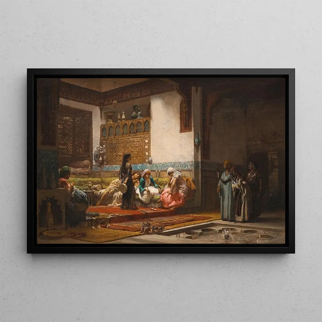 Die reproduction von Innenraum im maurischen Stil ist ein dekoratives Stück, das jeden Raum bereichern kann, sei es ein Wohnzimmer, ein Büro oder ein Schlafzimmer. Die Qualität der reproduction garantiert eine bemerkenswerte Treue zu den Originaldetails, sodass die ganze Schönheit des Werks bewundert werden kann. Die ästhetische Anziehungskraft dieses Gemäldes liegt in seiner Fähigkeit, eine warme und einladende Atmosphäre zu schaffen. Durch die Integration dieses Bildes in Ihre Dekoration bringen Sie einen Hauch von Exotik und Raffinesse in Ihr Zuhause, während Sie sich für ein zeitloses Kunstwerk entscheiden, das die Neugier Ihrer Gäste wecken wird.