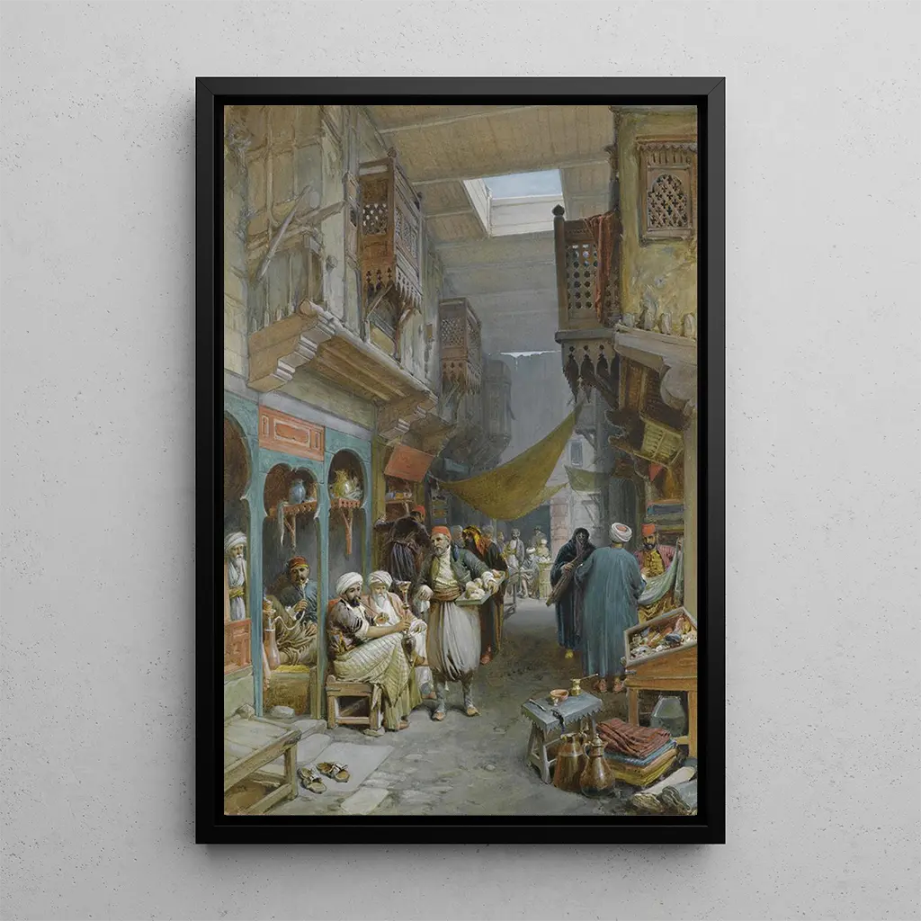 Bazar Suez : ein lebendiges Gemälde voller Leben und Farben In "Bazar Suez" taucht William Simpson ein in das pulsierende Herz eines ägyptischen Marktes, wo die leuchtenden Farben und die detaillierten Szenen die Essenz des Alltagslebens einfangen. Die Stände sind voll exotischer Waren, während die Figuren, gekleidet in traditionelle Kostüme, in einer Atmosphäre von Handel und Geselligkeit beschäftigt sind. Die Technik von Simpson, die Aquarell und Zeichnung verbindet, schafft eine Tiefe und Helligkeit, die die Szene fast greifbar macht. Dieses Gemälde lädt zu einer visuellen Erkundung ein, bei der jedes Element eine Geschichte erzählt und das Auge des Betrachters in einen Strudel aus Empfindungen gezogen wird. William Simpson : ein Zeuge des viktorianischen Orients William Simpson, britischer Maler und Illustrator des 19. Jahrhunderts, ist bekannt für seine lebendigen Darstellungen des orientalischen Lebens. Als unermüdlicher Reisender konnte er die Seele der Länder einfangen, die er besucht hat, insbesondere Ägypten und den Nahen Osten. Sein Stil, beeinflusst vom Realismus und Impressionismus, zeichnet sich durch eine besondere Liebe zum Detail und eine Palette lebendiger Farben aus. Simpson spielte eine Schlüsselrolle bei der Dokumentation orientalischer Kulturen in einer Zeit, in der der Westen begann, sich für diese fernen Länder zu interessieren. Sein Werk, "Bazar Suez", zeugt von dieser Faszination und seinem Engagement, die kulturelle Vielfalt seiner Zeit darzustellen. Eine dekorative Anschaffung mit vielfältigen Vorzügen Der kunstdruck von "Bazar Suez" ist ein ideales Dekorationsstück, um Ihr Zuhause zu bereichern, sei es im Wohnzimmer, Büro oder Schlafzimmer. Seine Druckqualität und seine Treue zu den Originalfarben machen dieses Leinwandbild zu einem wahren Meisterwerk zum Bewundern. Durch das Hinzufügen dieses Kunstwerks zu Ihrer Dekoration bringen Sie einen Hauch von Exotik und Geschichte in Ihren Raum und wecken gleichzeitig die Neugier Ihrer Gäste. Mit seinem unbestreitbaren ästhetischen Reiz ist dieser kunstdruck des Gemäldes von William Simpson eine kluge Wahl für alle, die Kunst und Dekoration verbinden möchten.