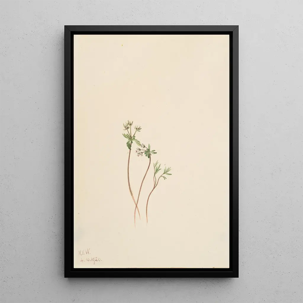 Die kunstdruck der Arbeit "Messager du printemps Erigenia bulbosa" von Mary Vaux Walcott entführt uns in eine zarte florale Welt. Mit Pastellfarben, die die Sanftheit des Frühlings hervorrufen, fängt diese Leinwand die flüchtige Schönheit der Blumen ein. Die detaillierten Feinheiten der Blütenblätter und Blätter zeugen von einer meisterhaften Aquarelltechnik, die eine leichte und luftige Atmosphäre schafft. Jeder Pinselstrich scheint diesem Pflänzchen neues Leben einzuhauchen und lädt den Betrachter ein, die Pracht der Natur zu bewundern, die nach dem Winter wieder erwacht.