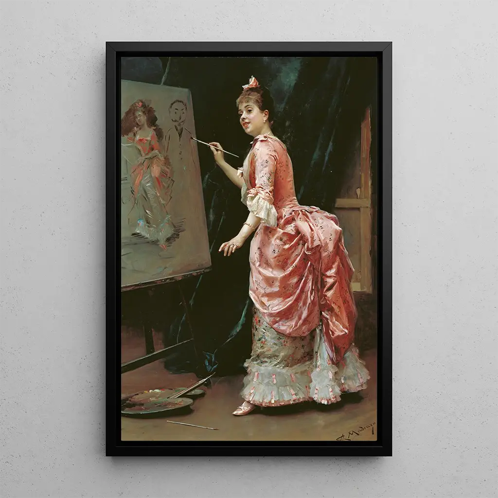 Raimundo de Madrazo y Garreta, geboren 1841, ist ein spanischer Maler, dessen Werk von einem tiefen Verständnis der menschlichen Psychologie geprägt ist. Beeinflusst von den künstlerischen Strömungen seiner Zeit, hat er sich als Meister des Porträts und der Darstellung des Alltagslebens etabliert. Sein Stil, der sowohl realistisch als auch poetisch ist, erlaubt es ihm, flüchtige Momente mit großer Sensibilität einzufangen. „Modell, das Unsinn macht“ veranschaulicht sein Talent perfekt, indem es die Schönheit und Unschuld der Kindheit in einer lebendigen Szene hervorhebt.