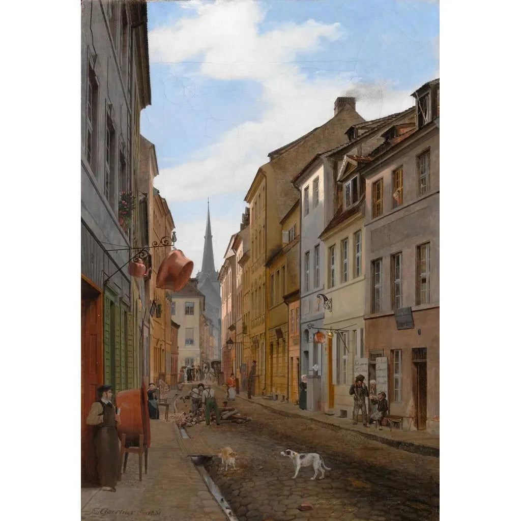 Parochialstraße in Berlin: Ein lebendiges Gemälde des urbanen Lebens Der Kunstdruck von Parochialstraße in Berlin lädt zu einer immersiven Erkundung der Stadt im 19. Jahrhundert ein. Eduard Gaertner, mit außergewöhnlicher Meisterschaft im Umgang mit Licht und Schatten, fängt das Wesen einer belebten Straße ein, auf der Passanten in einer lebendigen Atmosphäre miteinander verschmelzen. Die warmen, erdigen Farben, kombiniert mit Lichtakzenten, schaffen ein harmonisches Gleichgewicht, während die architektonischen Details der umliegenden Gebäude der Szene Tiefe verleihen. Dieses Gemälde ruft eine Nostalgie für eine vergangene Epoche hervor und feiert gleichzeitig die Dynamik des städtischen Lebens. Eduard Gaertner: Ein Zeuge der Stadtplanung des 19. Jahrhunderts Der deutsche Maler Eduard Gaertner des 19. Jahrhunderts ist bekannt für seine realistischen Darstellungen urbaner Landschaften. Beeinflusst von der romantischen Bewegung, verstand er es, die Schönheit der Städte durch eine zugleich poetische und analytische Linse einzufangen. Seine Karriere blühte in Berlin auf, wo er die Entwicklung der Architektur und des täglichen Lebens dokumentierte. Gaertner vereinte technische Präzision mit künstlerischer Sensibilität, wodurch seine Werke wertvolle Zeugnisse seiner Zeit sind. Seine Arbeiten sind ein Fenster in die Vergangenheit und bieten eine einzigartige Perspektive auf Stadtplanung und Kultur seiner Epoche. Eine dekorative Anschaffung mit vielfältigen Vorzügen Der Kunstdruck von Parochialstraße in Berlin ist ein ideales Dekorationsstück, um Ihr Zuhause zu bereichern, sei es im Wohnzimmer, Büro oder Schlafzimmer. Seine Druckqualität und die Treue zu den Originaldetails machen dieses Leinwandbild zu einer attraktiven Wahl für Kunstliebhaber und Geschichtsbegeisterte. Durch die Integration dieses Gemäldes in Ihre Dekoration verleihen Sie Ihrem Raum einen Hauch von Eleganz und Kultur, während Sie Gespräche über Kunst und Geschichte anregen. Dieses Bild ist nicht nur ein dekoratives Element, sondern auch eine Einladung zur Kontemplation und Flucht in eine faszinierende Epoche.