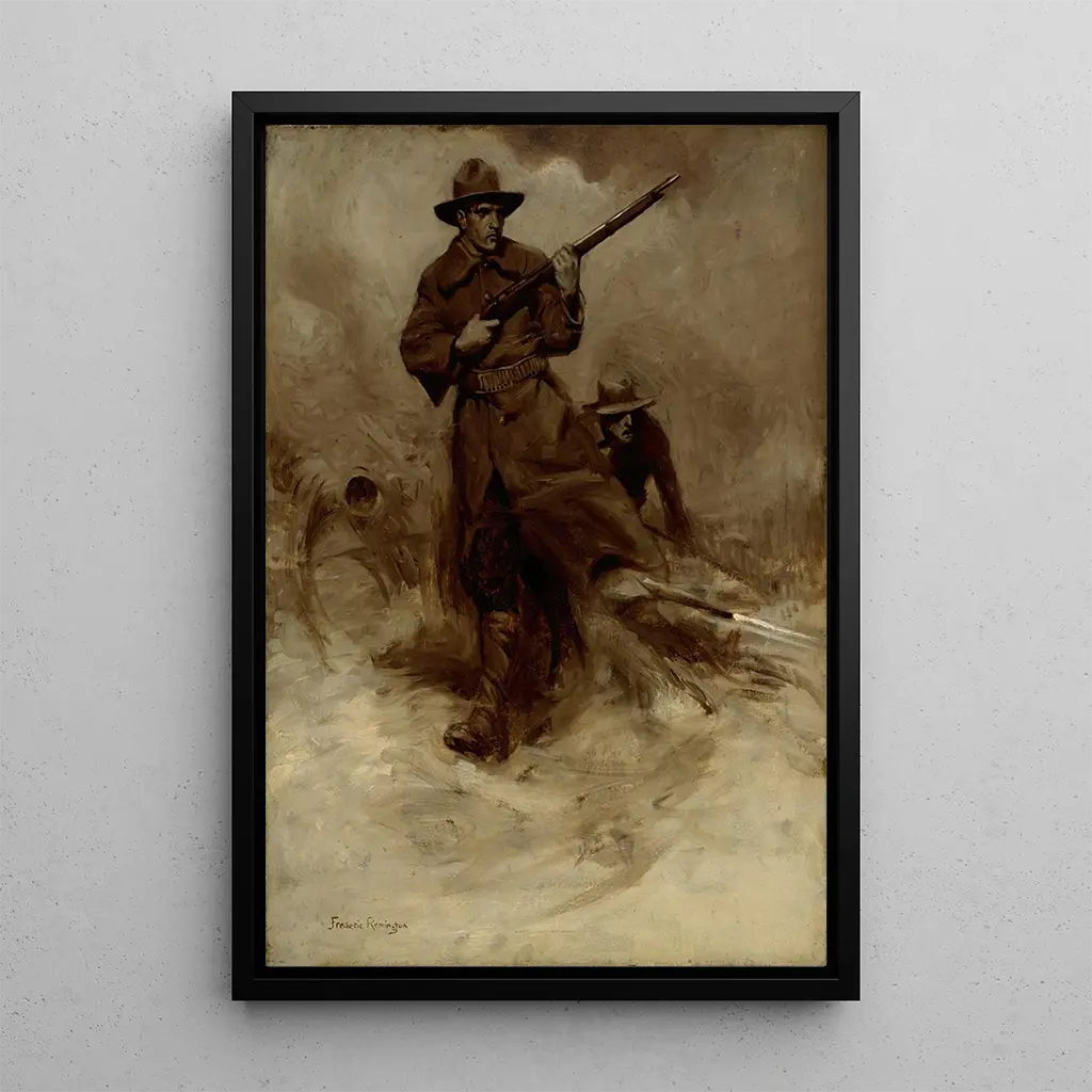 Der kunstdruck von Soldaten des spanisch-amerikanischen Krieges in Aktion ist ein dekoratives Stück, das in jedem Raum die Aufmerksamkeit auf sich ziehen wird. Ob im Büro, Wohnzimmer oder Ausstellungsraum, dieses Bild verleiht Ihrer Dekoration eine historische Dimension und ein Gefühl von Dramatik. Die Druckqualität sorgt für eine bemerkenswerte Treue zu den Details des Originalwerks, sodass die Kraft und die Emotionen der Szene voll zur Geltung kommen. Durch die Hinzufügung dieses Leinwandbildes zu Ihrer Sammlung bereichern Sie Ihre Umgebung mit einem Werk, das Mut und Entschlossenheit evoziert und gleichzeitig das militärische Erbe feiert.