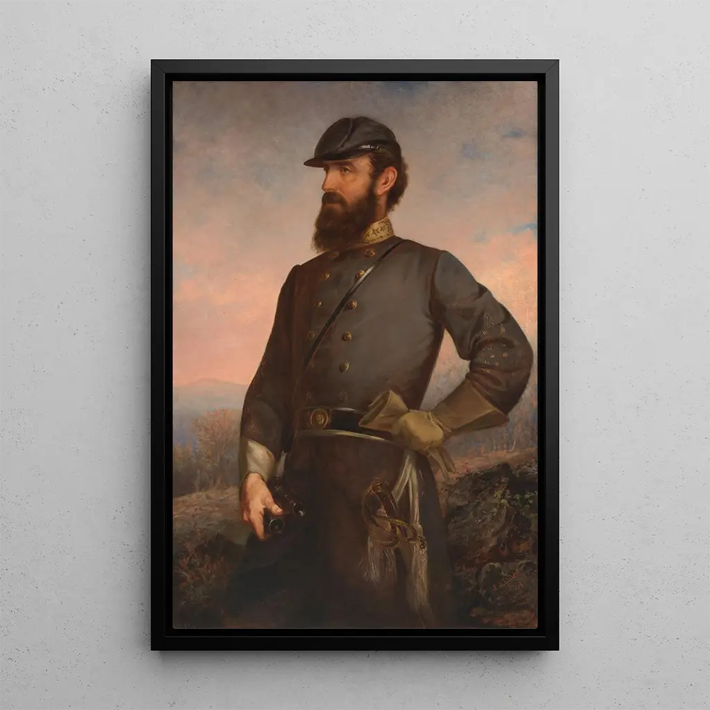 „Thomas Jonathan Jackson“ ist ein ikonisches Werk von John Adams dem Älteren, das die Essenz eines der größten Generäle des Bürgerkriegs einfängt. Dieses Gemälde, reich an Details, zeigt Jackson in einer heroischen Haltung, mit entschlossenem Blick und sorgfältig dargestellter Militäruniform. Die dunklen, erdigen Farben spiegeln die Schwere der Zeit wider, während die Ölmaltechnik die Texturen der Stoffe und der umgebenden Elemente hervorhebt. Die Atmosphäre dieses Werks ist sowohl feierlich als auch inspirierend und würdigt einen Mann, dessen Mut und Strategie die amerikanische Geschichte geprägt haben.