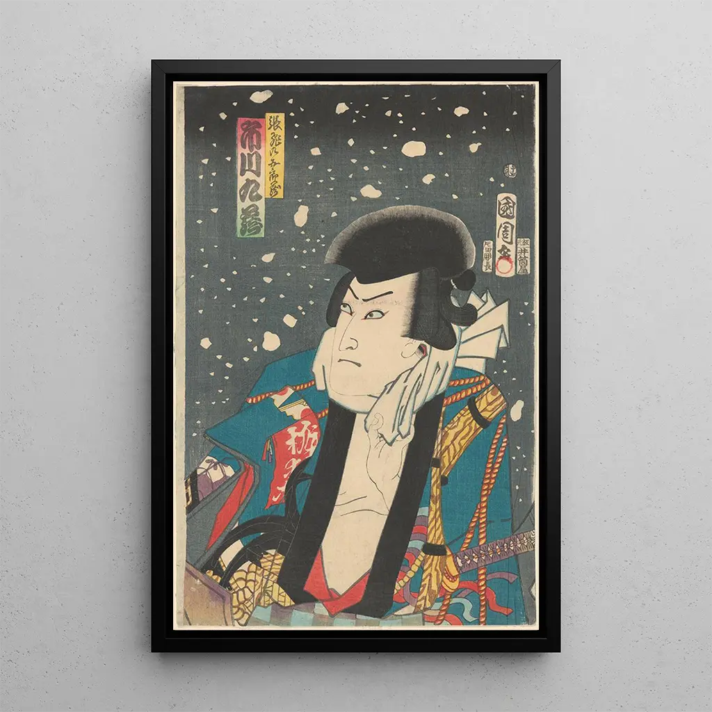 Schauspieler Ichikawa Kyōzō: eine Feier des Kabuki-Theaters Das Werk "Schauspieler Ichikawa Kyōzō" fängt die dynamische Essenz des japanischen Kabuki-Theaters durch das Porträt eines ikonischen Schauspielers ein. Die lebendigen Farben und die mutigen Muster spiegeln die Energie und das Drama wider, die dieser Kunstform innewohnen. Die Haltung des Schauspielers sowie sein intensiver Ausdruck erinnern an eine lebendige und emotionale Szene und entführen den Betrachter in die faszinierende Welt des Kabuki. Die verwendete Drucktechnik ermöglicht es, die Details der traditionellen Kostüme mit bemerkenswerter Präzision wiederzugeben und das handwerkliche Können der Epoche hervorzuheben. Kunichika Toyohara: ein Virtuose des Kabuki im 19. Jahrhundert Kunichika Toyohara, einer der einflussreichsten Künstler des Ukiyo-e im 19. Jahrhundert, hat die Magie des Kabuki durch seine Werke eingefangen. In einem künstlerischen Umfeld aufgewachsen, wurde er von den großen Meistern seiner Zeit beeinflusst und entwickelte gleichzeitig seinen eigenen, unverwechselbaren Stil. Seine Drucke zeichnen sich durch mutige Kompositionen und leuchtende Farben aus, die die Schönheit und die Komplexität der Theateraufführungen ehren. Toyohara spielte eine entscheidende Rolle bei der Popularisierung des Kabuki, und seine Werke inspirieren weiterhin Kunst- und Theaterliebhaber weltweit. Eine dekorative Kunstdruck-Reproduktion mit vielfältigen Vorzügen Die Reproduktion von "Schauspieler Ichikawa Kyōzō" ist eine faszinierende Ergänzung jeder Kunstsammlung. Ob im Wohnzimmer, im Büro oder im Theaterraum, dieses Bild vermittelt Eleganz und die Reichtümer der japanischen Kultur. Die Druckqualität sorgt für eine außergewöhnliche Treue bei den Farben und Details des Originalwerks, sodass die Virtuosität von Toyohara voll zur Geltung kommt. Mit ihrer ästhetischen Anziehungskraft und ihrer faszinierenden Geschichte ist diese Leinwand die perfekte Wahl für alle, die ihr Interieur mit einem einzigartigen künstlerischen Akzent bereichern möchten.