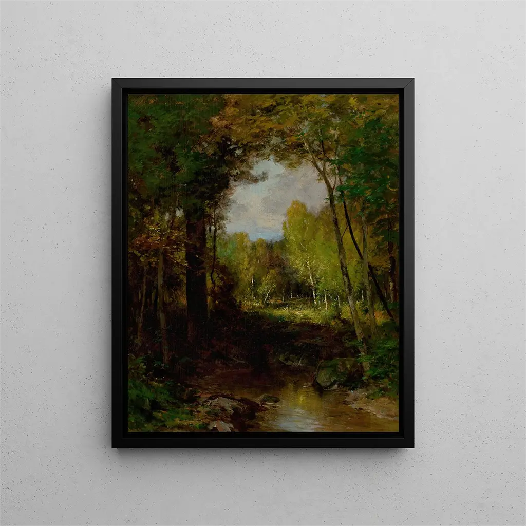 Keene Adirondacks von Alexander Helwig Wyant – Fesselnde Einführung Das Werk "Adirondacks von Keene" von Alexander Helwig Wyant ist ein visuelles Zeugnis einer Natur, die sowohl majestätisch als auch ruhig ist. Gemalt am Ende des 19. Jahrhunderts, entführt dieses Gemälde den Betrachter in die bezaubernden Landschaften der Adirondacks, einer Region, die zahlreiche Künstler der Epoche inspiriert hat. Das sanfte Licht, das von diesem Werk ausgeht, erinnert an die ersten Morgenstrahlen, während die imposanten Berge im Hintergrund emporragen und einen beeindruckenden Kontrast zur Ruhe der Seen im Vordergrund bilden. Wyant gelingt es durch seine zarte Herangehensweise und sein ausgeprägtes Beobachtungsvermögen, das Wesen dieses Ortes einzufangen, und macht dieses Werk zu einem wahren visuellen Gedicht, das der Natur gewidmet ist. Stil und Einzigartigkeit des Werks Die Ästhetik des "Adirondacks von Keene" zeichnet sich durch eine subtile und harmonische Farbpalette aus. Die dominierenden Grün- und Blautöne vermitteln ein Gefühl von Frieden und Ruhe. Das geschickte Spiel von Licht und Schatten, das Wyant meisterhaft umsetzt, verleiht dieser Landschaft eine fast spirituelle Dimension. Die Detailgenauigkeit, von den Reflexionen im Wasser bis zu den Nuancen der Blätter, zeugt von tiefem Respekt vor der Natur. Dieses Gemälde ist nicht nur eine einfache Darstellung; es lädt zu einer introspektiven Betrachtung ein, zu einer Eintauchen in eine Welt, in der die Zeit stillzustehen scheint. Wyants Technik, die Realismus und Impressionismus verbindet, ermöglicht es, die einzigartige Atmosphäre der Adirondacks zu spüren, in der jedes Element des Gemäldes zu vibrieren scheint. Der Künstler und sein Einfluss Alexander Helwig Wyant, geboren 1836, ist eine ikonische Figur der amerikanischen Landschaftsmalerei. Beeinflusst von den großen Meistern seiner Zeit, entwickelte er einen persönlichen Stil, der die Präzision des Zeichnens mit einer poetischen Sensibilität verbindet. Seine Karriere ist geprägt von Reisen durch die Vereinigten Staaten, doch die Region der Adirondacks ist für ihn eine unerschöpfliche Inspirationsquelle. Wyant spielte eine entscheidende Rolle bei der Entstehung der amerikanischen Landschaftsmalerei, und sein Werk ebnete den Weg für viele nachfolgende Künstler. Seine Herangehensweise an die
