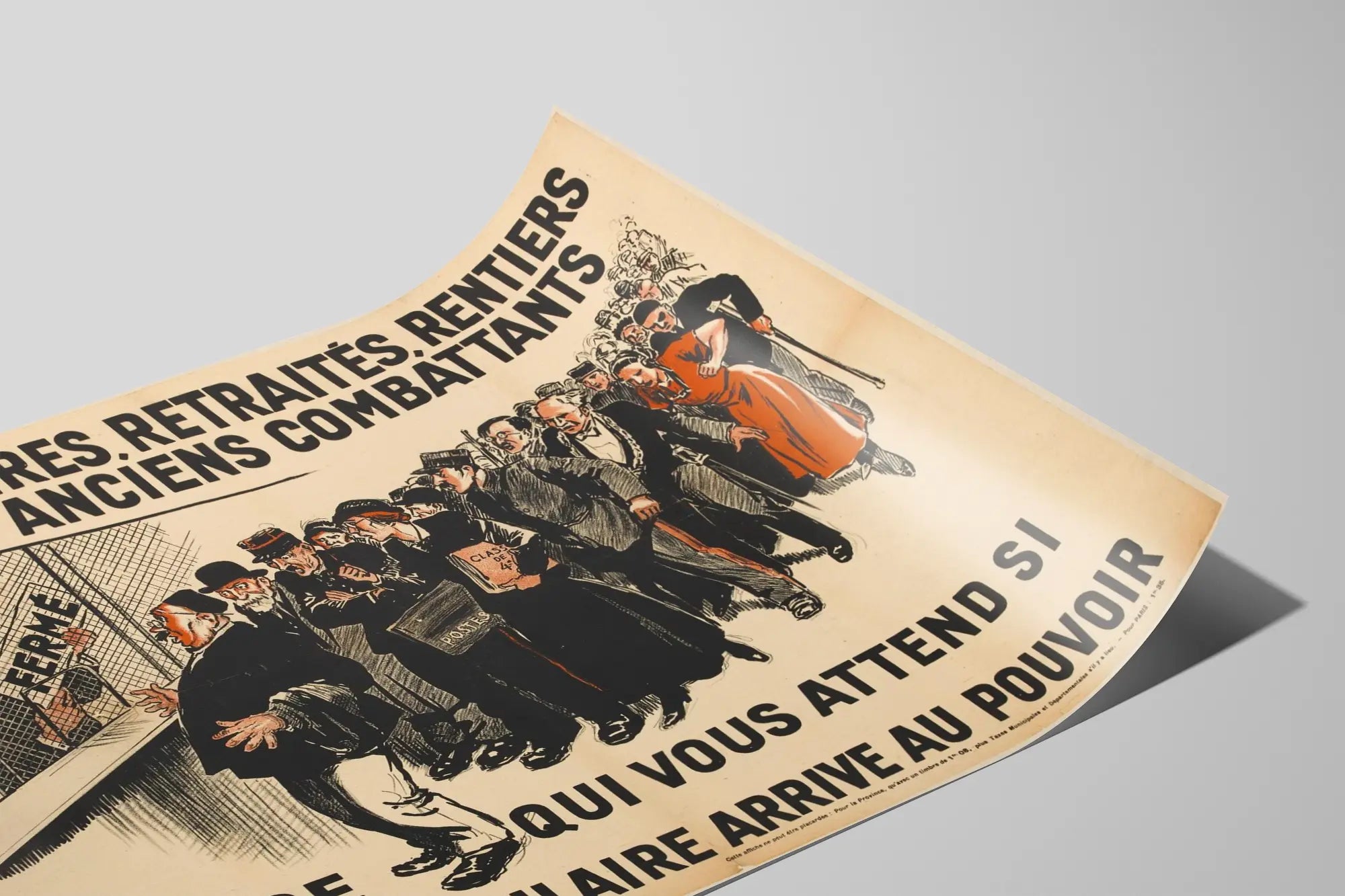 Affiche vintage Front Populaire - Fonctionnaires et retraités