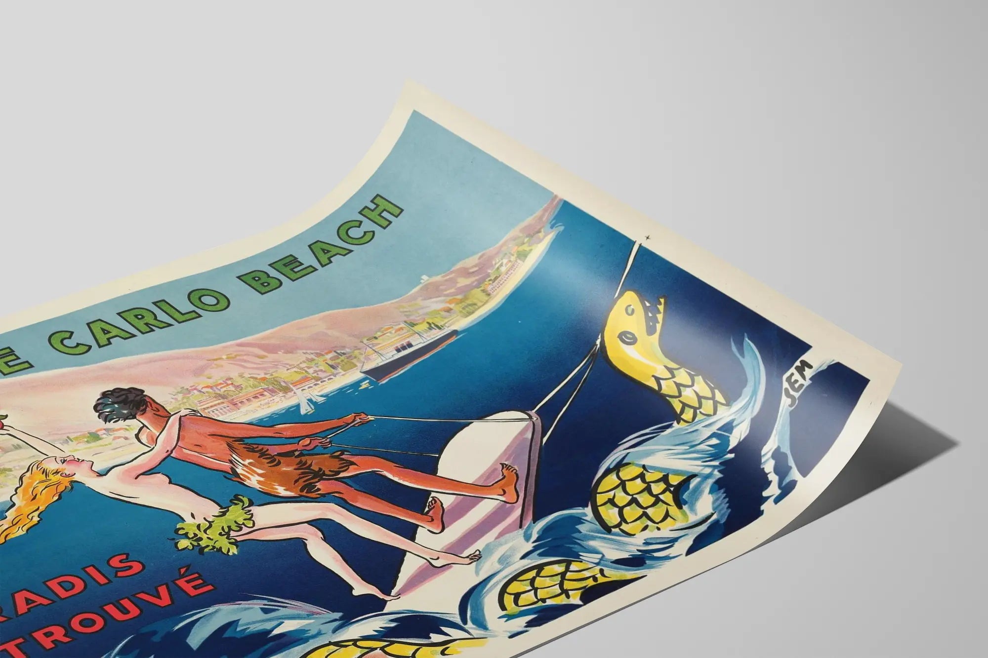Affiche Vintage Monte Carlo Beach - Le Paradis Retrouvé