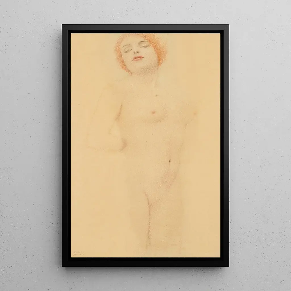 Fernand Khnopff, eine ikonische Figur des belgischen Symbolismus, prägte das Ende des 19. Jahrhunderts durch seinen einzigartigen Ansatz in der Malerei. Geboren 1858, wurde er von verschiedenen künstlerischen Strömungen beeinflusst, darunter Romantik und Präraffaelismus. Khnopff entwickelte einen persönlichen Stil, der durch rätselhafte Kompositionen und eine raffinierte Farbpalette gekennzeichnet ist. Seine Arbeit, oft introspektiv, spiegelt eine Suche nach der menschlichen Seele und ihren Emotionen wider. "Studie des Aktes" ist Teil dieser Suche und zeugt von seinem Interesse am Körper und an Schönheit, während sie tiefere Themen im Zusammenhang mit Psychologie und Spiritualität anspricht.