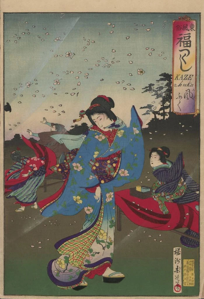 Toyohara Chikanobu, geboren 1838, gilt als einer der letzten großen Meister des ukiyo-e, einer Kunstform, die während der Edo-Zeit blühte. Sein Schaffen spiegelt die Umbrüche seiner Epoche wider, geprägt vom Öffnen Japans gegenüber dem Westen. Chikanobu hat es verstanden, zeitgenössische Elemente zu integrieren und gleichzeitig die traditionellen Techniken zu ehren, was ihm ermöglichte, sich unter seinen Zeitgenossen hervorzuheben. Seine Werke, darunter das Album de Nishikie, sind nicht nur Zeugnisse seines Talents, sondern auch Fenster in eine vergangene Ära, reich an Traditionen und Ästhetik.