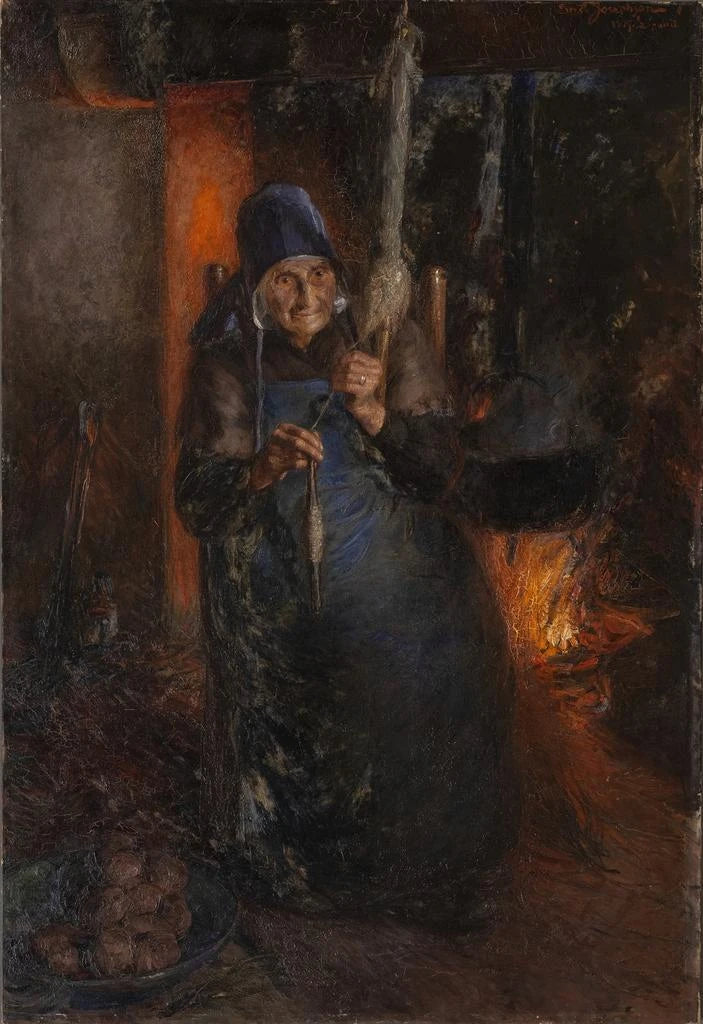 Gemälde Alte Frau beim Spinnen - Ernst Josephson | Kunstdruck