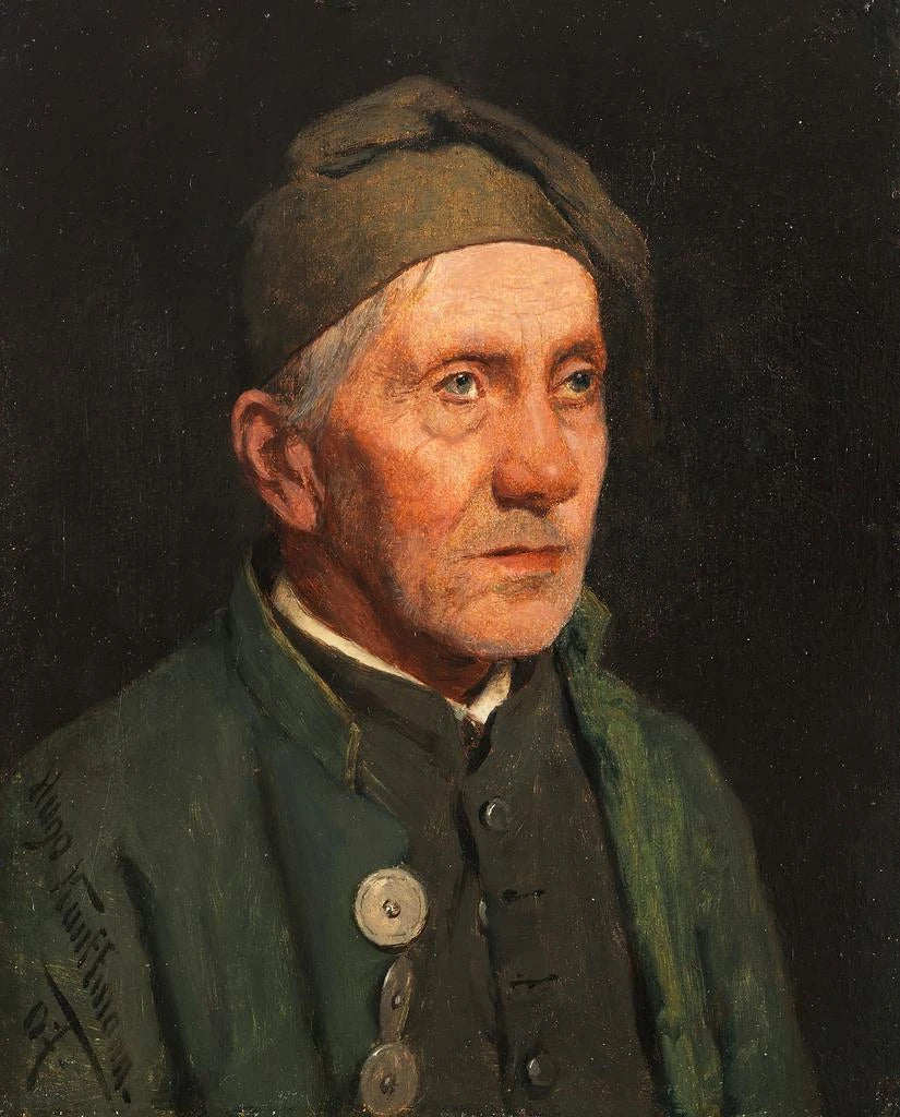 Alter Landwirt mit einer spitzen Mütze - Hugo Kauffmann